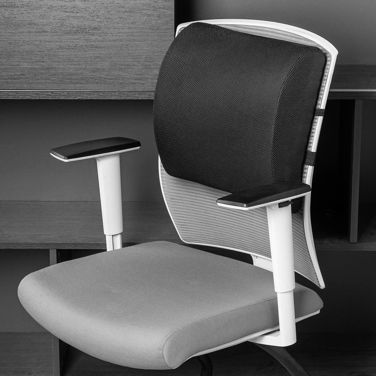 CONTOURED DESIGN: Benefit from a memory foam back support cushion that conforms to your body’s natural curvature, providing personalized comfort
