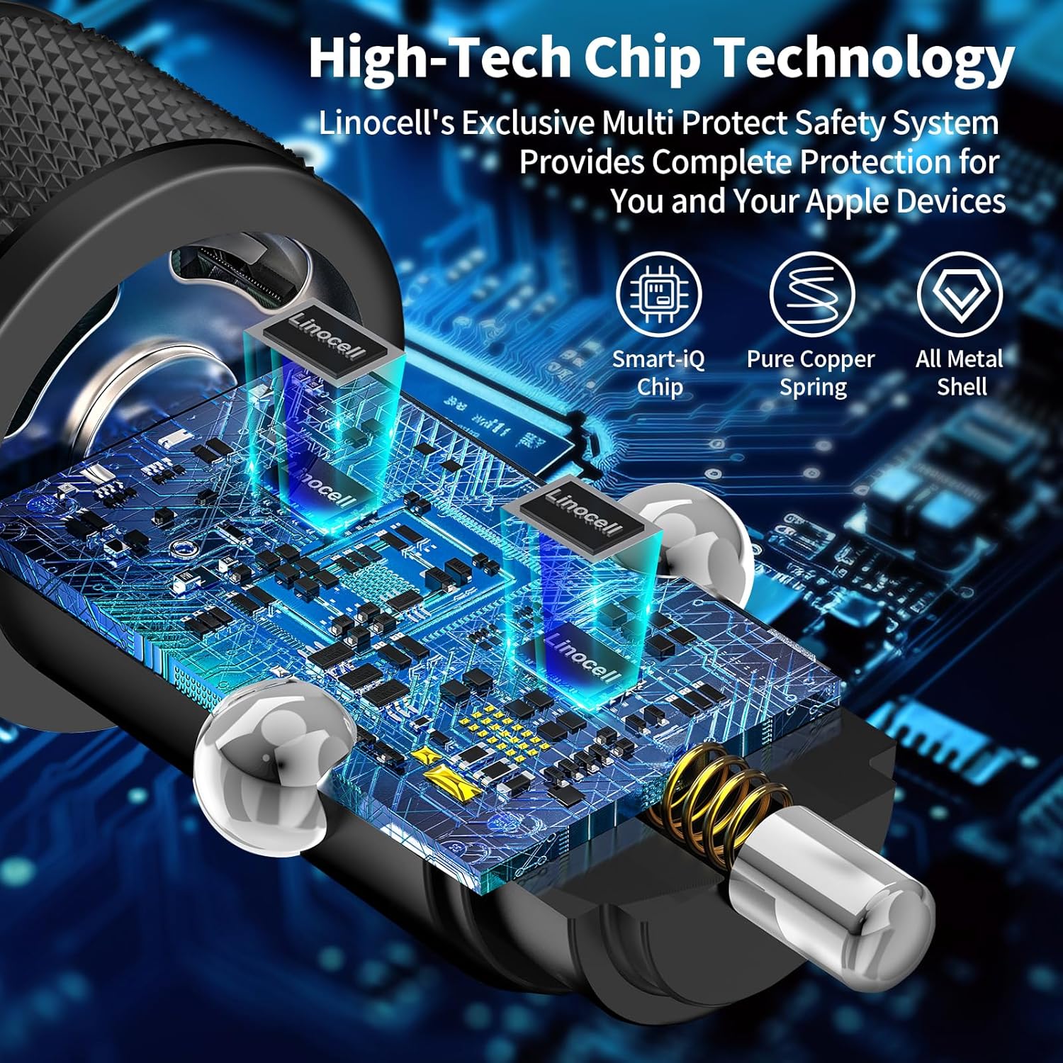 [Apple MFi Certified] iPhone 17 Car Charger, Linocell 90W USB C Car Charger Dual PD Power Cigarette Lighter Adapter with 2Pack Type C Braided Cable for iPhone 17/17 Pro Max/16/15/Galaxy S26/S25/Pixel