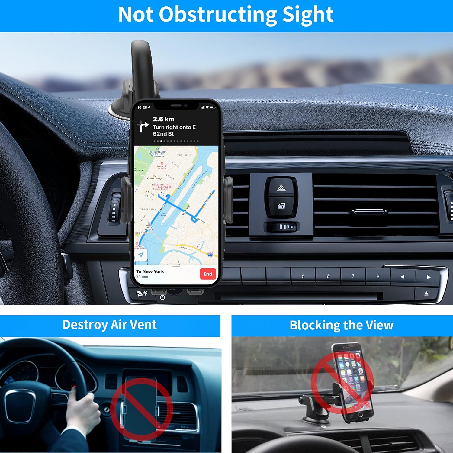 ✅【Simple Installation】One-touch button makes it easy to place and remove your cell phone. The window dash phone holder allows for convenient in-car navigation, music, and calls, freeing your hands.🎁 It’s a perfect gift choice for Thanksgiving, Christmas, and other holidays. (💡 💡ATTENTION: The suction cup cell phone holder for car is equipped with an anti-static film that leave no adhesive residue.)