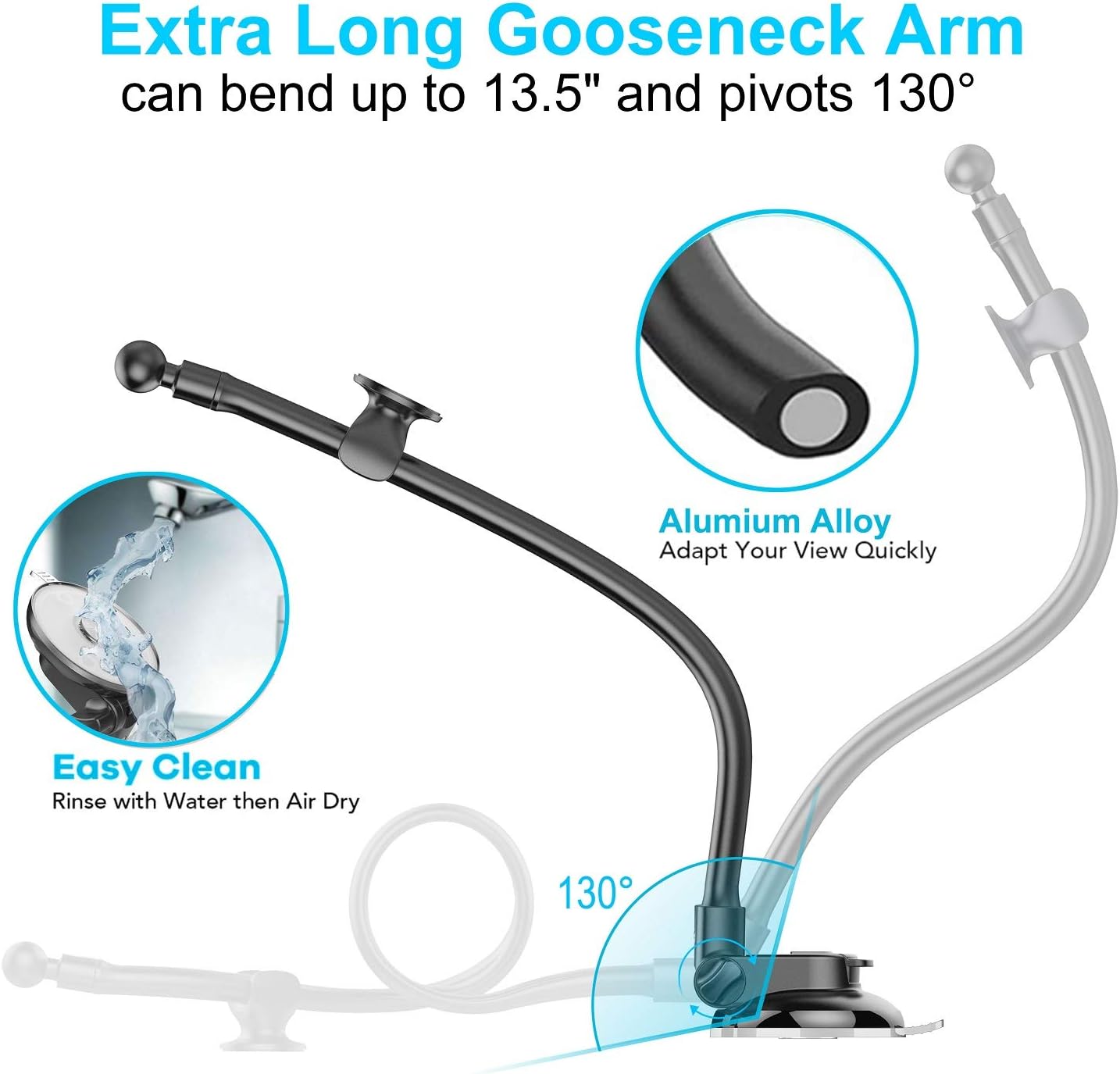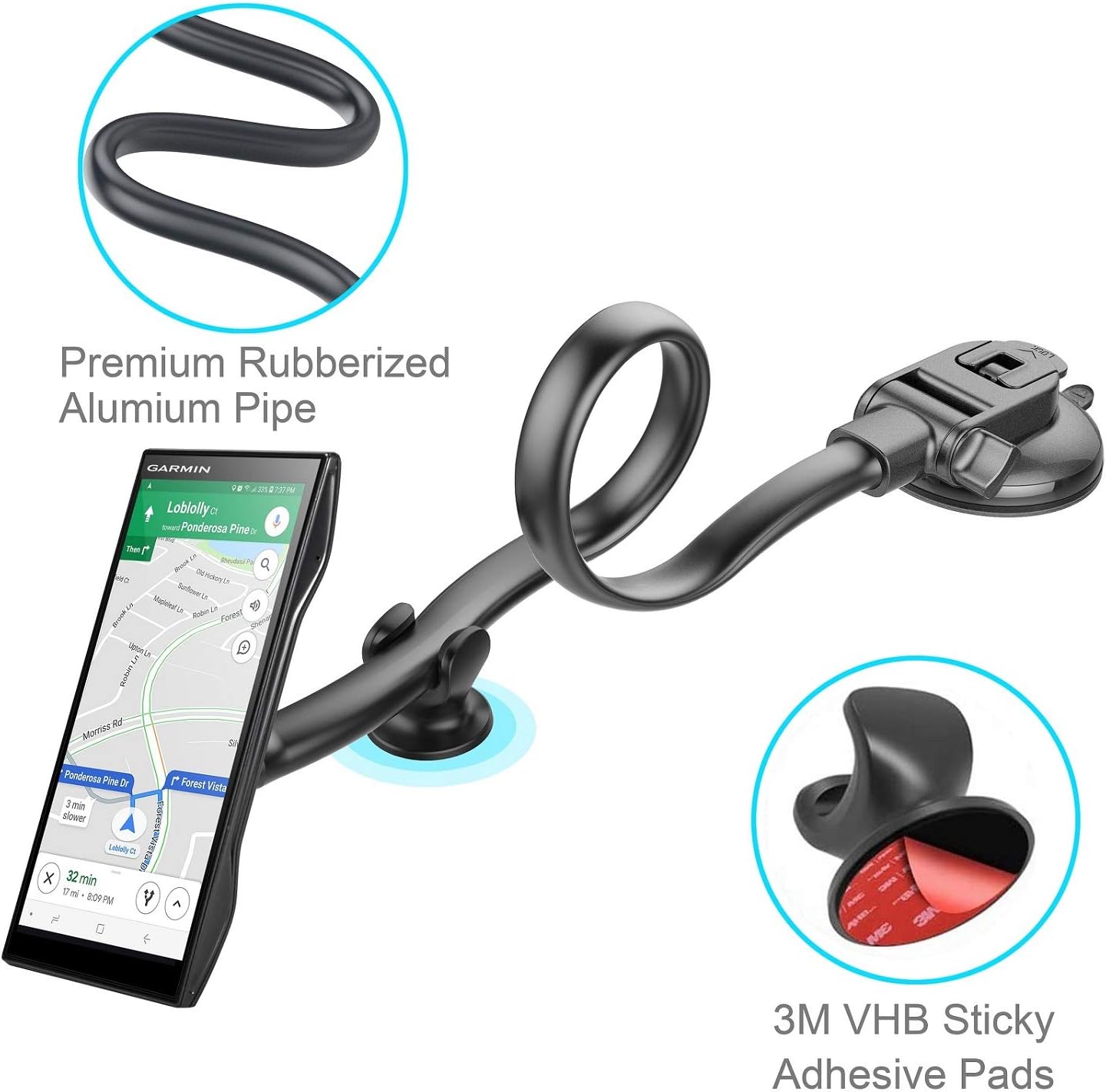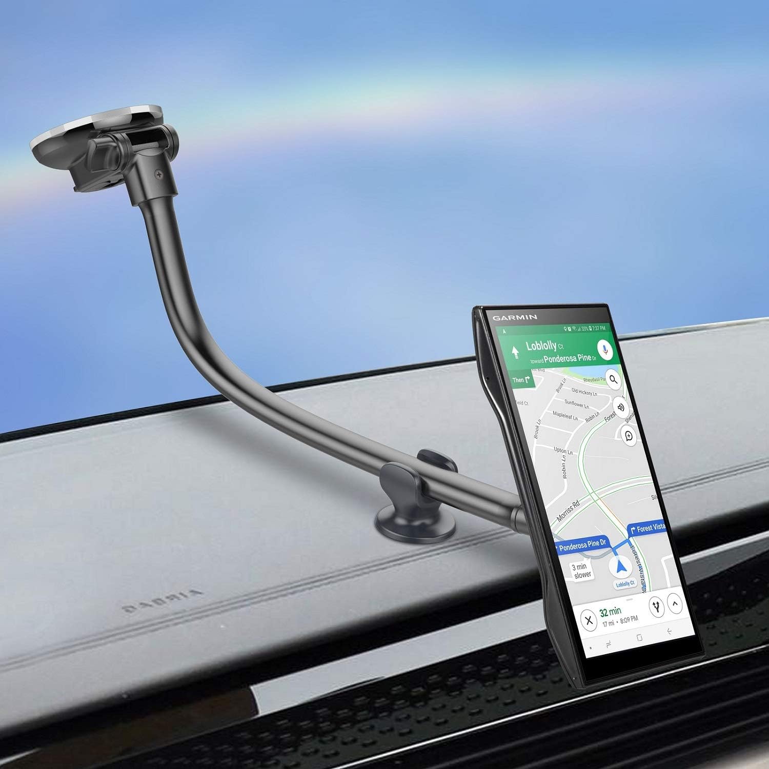 Long Arm: The suction cup gps mount for Garmin can bend up to 13.5 inches for various angles to your liking, making it easy to mount the GPS on the windshield or dash without blocking the view especially when you drive a semi-truck with a large dashboard