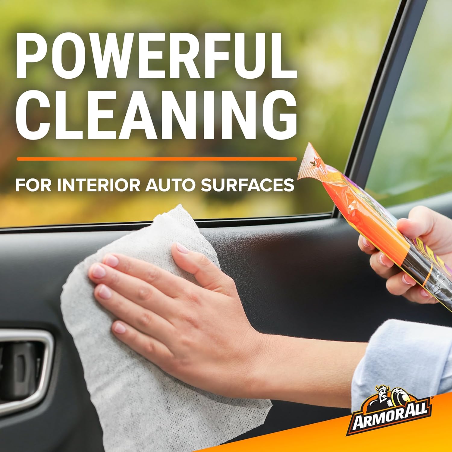 Lift away dirt in a single wipe with Armor All Multi Purpose Car Cleaning Wipes. Great for the whole car, these all-in-one automotive wipes easily remove grime to reveal natural “just detailed” look. These convenient, disposable Armor All wipes are meticulously engineered for your car’s special needs. Just wipe the dash, vinyl, fabric, carpet, consoles and more’this formula won’t dry out, damage, or fade surfaces. The lint free wipes leave behind an exceptional clean and a matte finish that brings out your car’s natural beauty. A Moisture Lock Lid keeps these automotive wipes fresh for a year.