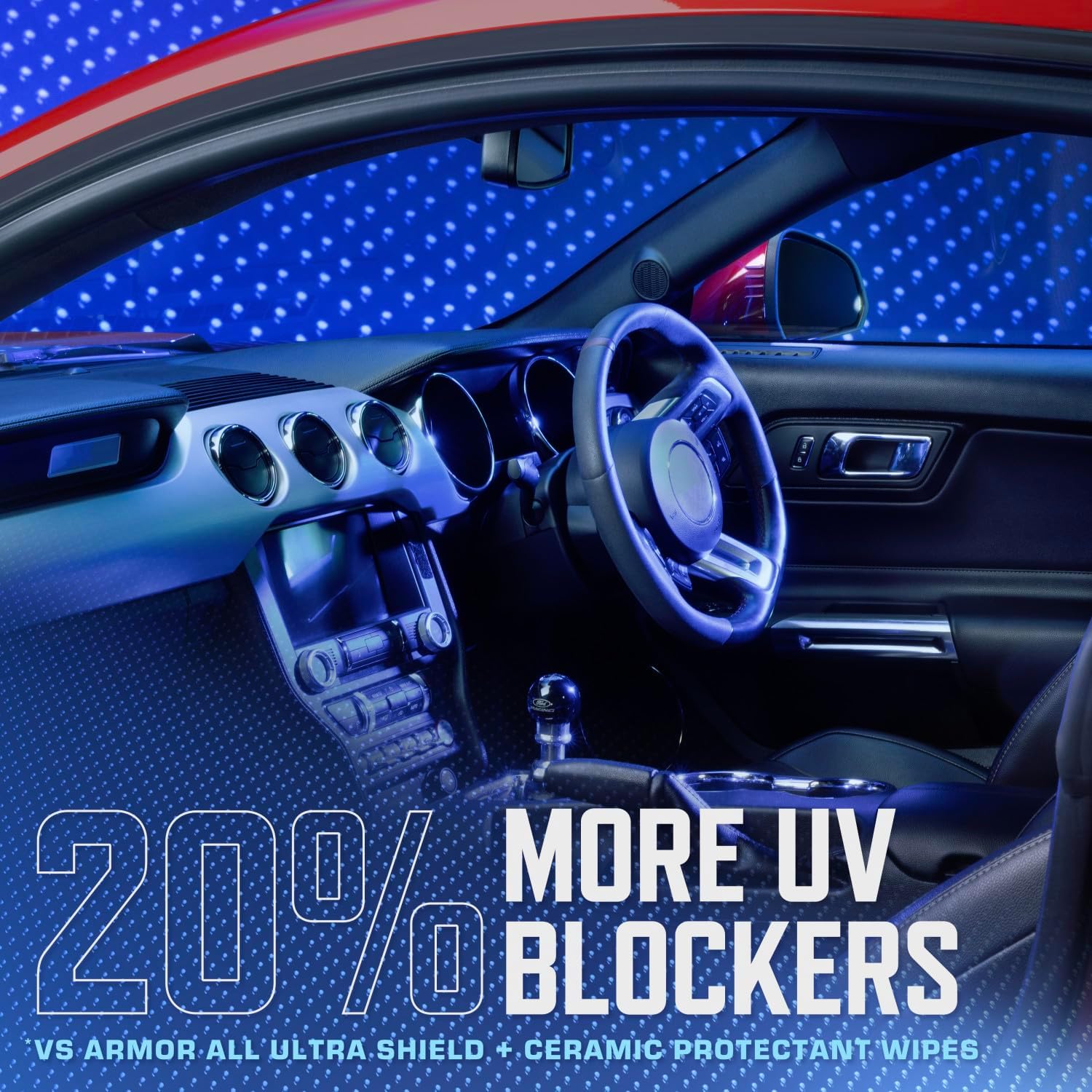 With 20% more UV blockers*, these interior car protectant wipes protect vinyl, rubber and plastic surfaces from UV damage