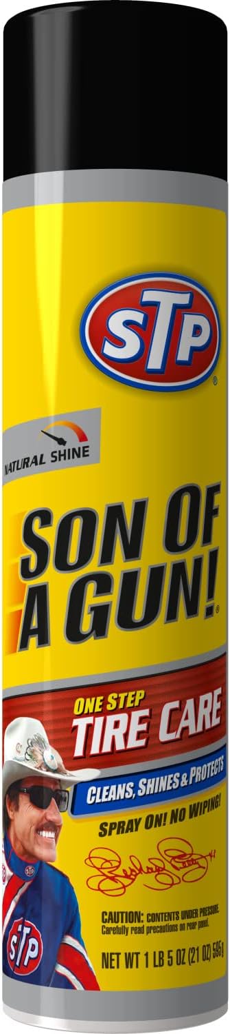 My husband can spend two hours washing my car…and it’s a MINI! But when he does the tires with Son of a Gun, all he does is spray it on and walk away. And the tires look like new. I highly recommend Son of a Gun. Wish we could find it in stores, but looks like it is only available on line where we like. Still a great price and it was delivered super fast by the vendor.