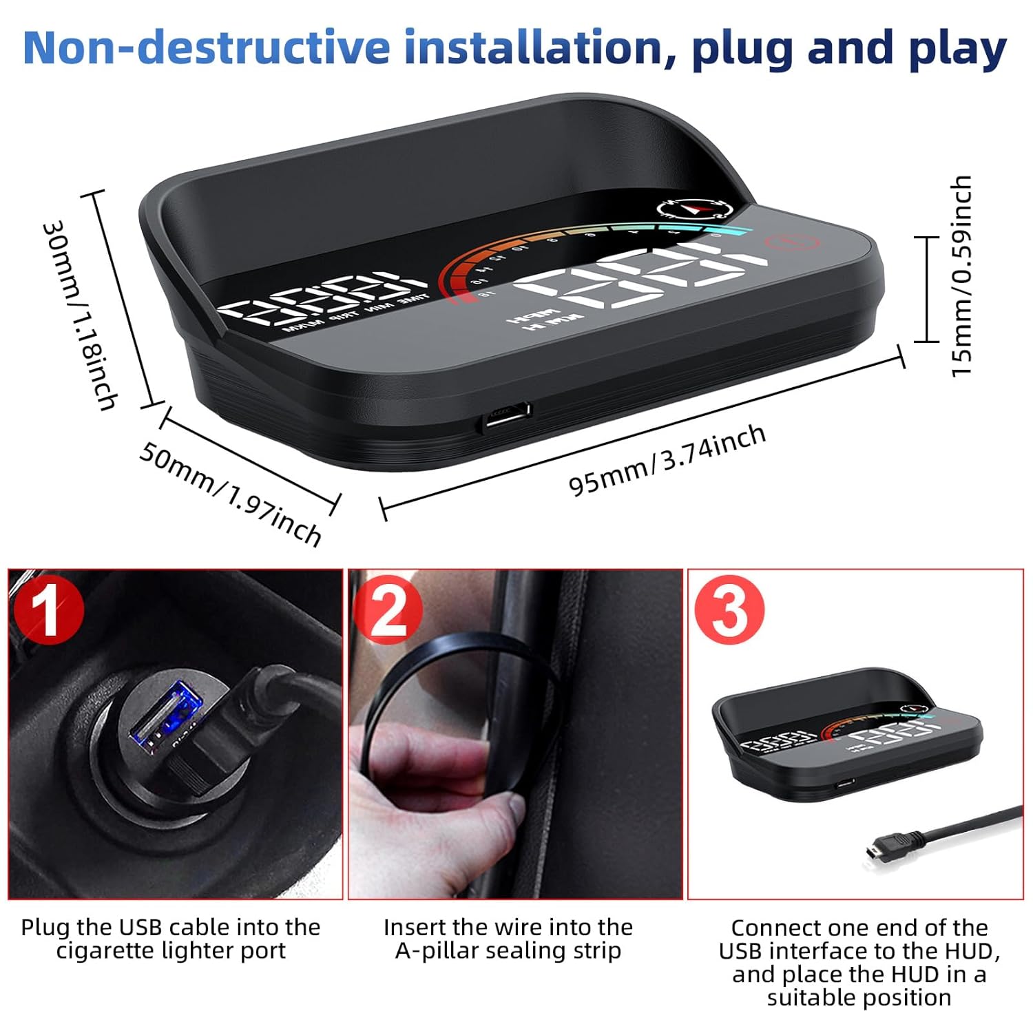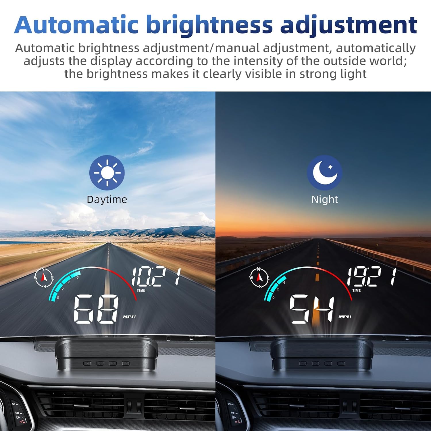Accurate Real-Time Data Display: This HUD GPS Speedometer uses the windshield as a projection screen to project data directly onto it, letting you stay informed at a glance with comprehensive info: digital compass (N/S/E/W), real-time vehicle speed (KM/H or MPH switchable), driving time (MIN), and trip mileage (TRIP). The multi-function display area ensures all critical data is visible without taking your eyes off the road, enhancing driving safety