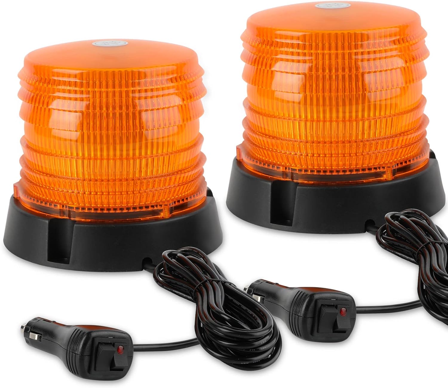ASPL 2pcs LED Warning Flash Beacon Lights, 60 LED Amber Warning Safety Flashing Strobe Lights with Magnetic and 16 ft Straight Cord for Vehicle Truck Tractor Golf Carts UTV Car Bus,12V-24V