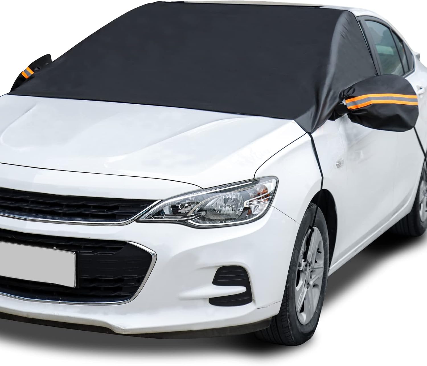 Thanks Amazon, I finally found a snow cover for my 2024 Niro windshield! I tried one of those covers from W-mart that has two flaps that close in the car door to secure it in place. Yes, it covered part of the windshield but allowed snow and ice to collect around the wipers because it did not extend on to the hood. Some covers available have magnets that could attach down to steel hoods but the Niro has a nonmagnetic aluminum hood. Also the flaps that were trapped in the car door allowed water to seep in and run down inside when it rained and soaked the interior carpet-not good.With this product, the elastic straps are adjustable and have decently strong holding power. I just installed this cover at night in very strong wind to test it out and its holding well, barely flapping at all. The straps over the hood attached to the front wheels for a snug fit with plenty of coverage over the wipers. For the upper windshield, I tied the “security” strap into a loop and then ran the elastic strap through the front door handles and attached the hook to the loop. The mirror “mitts” should be good to eliminate frost and snow build up. 5+ star product for my application.