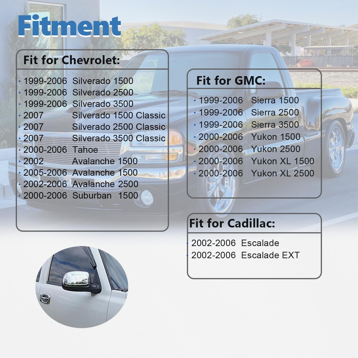 Fit for GMC: 1999-2006 for Sierra 1500 2500 3500, 2000-2006 for Yukon 1500 2500, 2000-2006 for Yukon XL 1500 XL 2500
