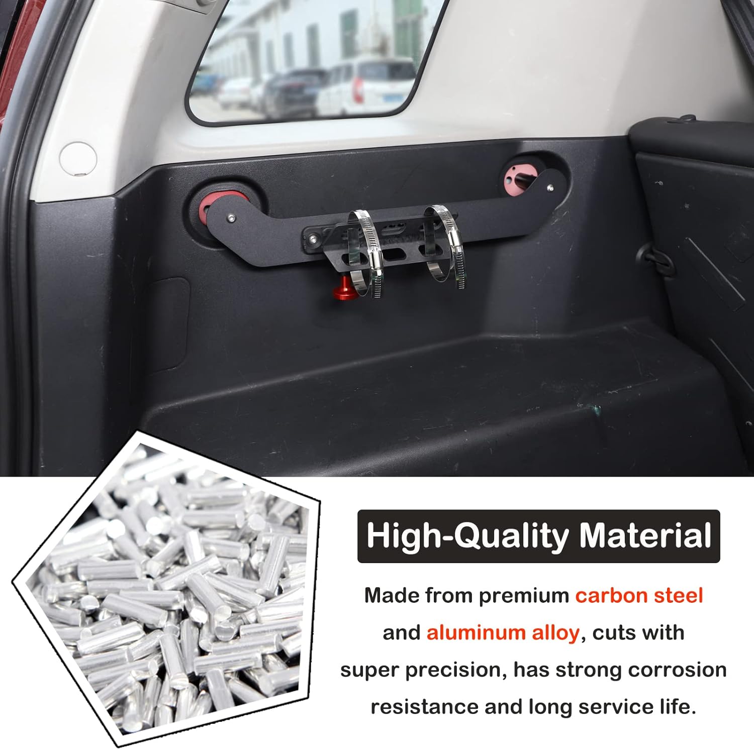 🔥Quality Material: This Car Fire Extinguisher Mount Bracket is made from premium carbon steel and aluminum alloy, which is durable and cuts with super precision. Aluminum alloy surface with dense oxidized Plating film, strong corrosion resistance, not easy to fade, and long service life.
