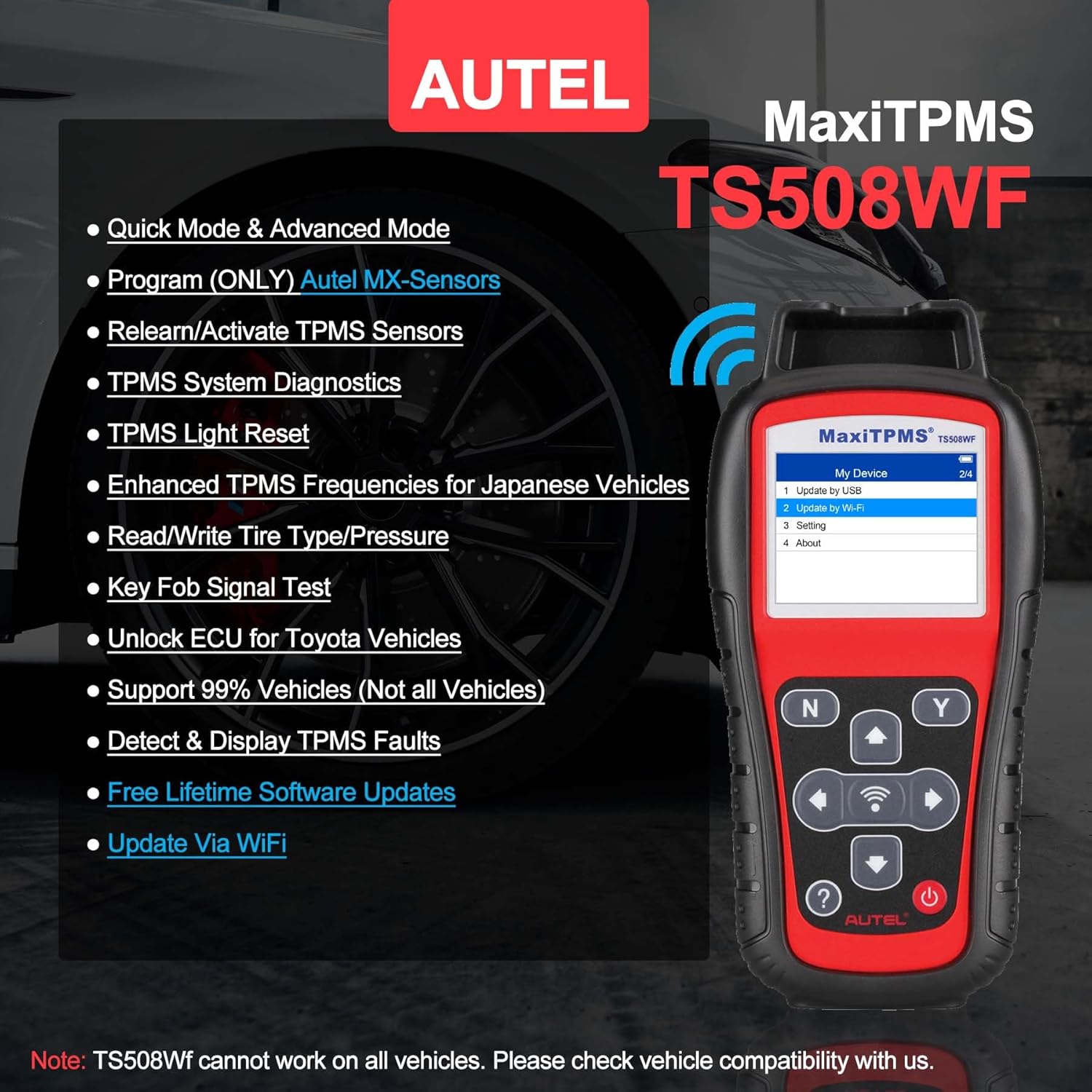 [MASTER ANY TPMS JOB] The Autel TS508WF is the all-in-one TPMS diagnostic tool for professional mechanics and DIYers. It lets you activate, read, and program sensors, perform OBD/automatic/stationary relearns, and clear fault codes. With dedicated Quick Mode for fast sensor checks and Advanced Mode for in-depth diagnostics, you save time on every tire pressure monitoring system service job.