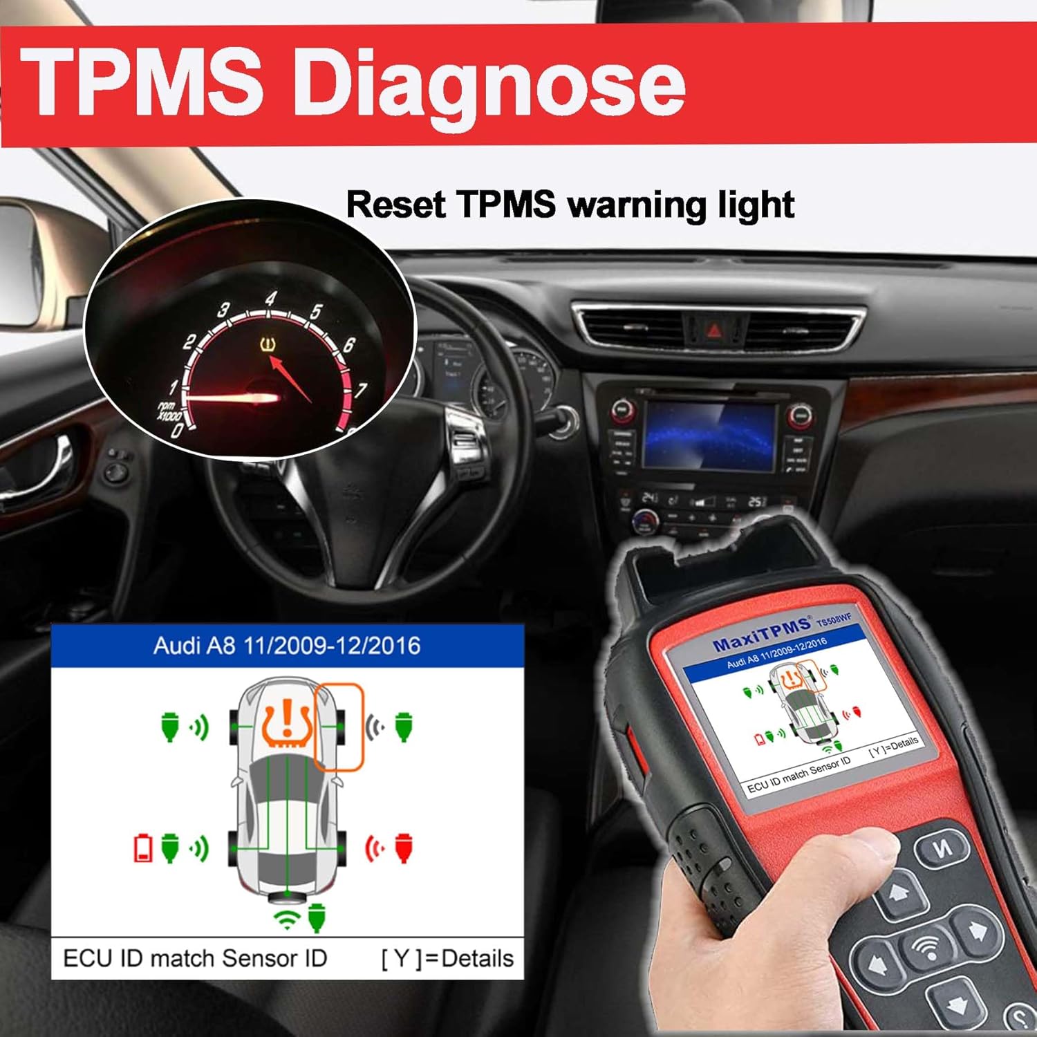 [COMPLETE DIAGNOSTIC POWER] Go beyond basic tire pressure sensor reset tools. This TPMS service tool views real-time sensor data, analyzes sensor waveforms to pinpoint intermittent failures, and reads/clears TPMS ECU trouble codes. It also includes essential OBDII functions like reading/clearing DTCs and live data for a full vehicle health check after tire rotation or winter tire change.