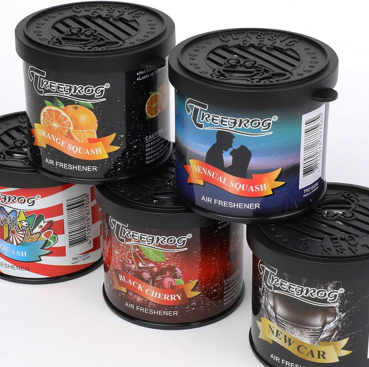 I really like the Tree Frog Black Squash. It smells great and the little can does last a long while. I also don’t let me car bake out in the sun and I have it in a position in my cupholder that lets me control the amount scent.I keep my car clean and I don’t have the can exposed 100% of the time because I don’t need my car to wreak of the scent.1 can, can last me over 2 months easy.
