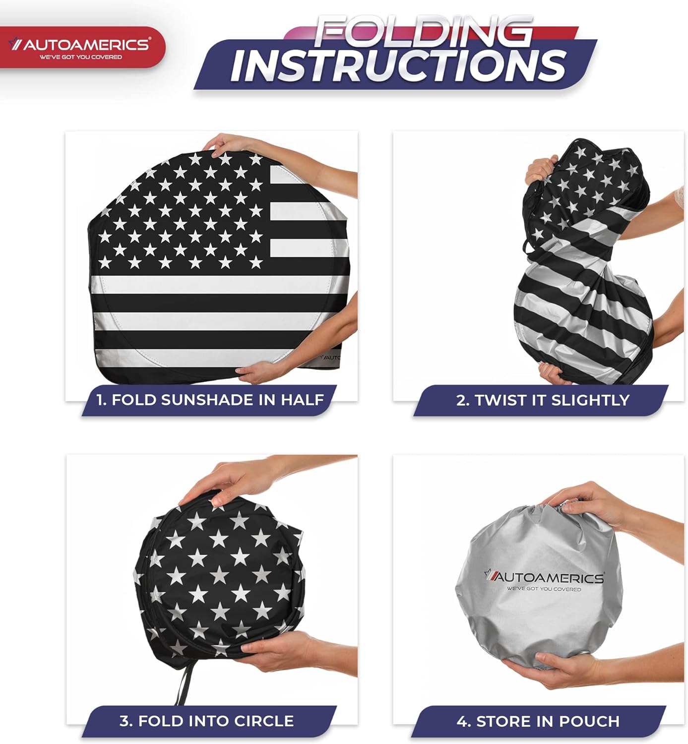 Autoamerics 1-Piece Windshield Sun Shade B&W American Flag USA Patriotic Design – Foldable Car Fits Easily to SUV & Truck Vehicles UV Ray Blocker Keeps Your Vehicle Cool Large