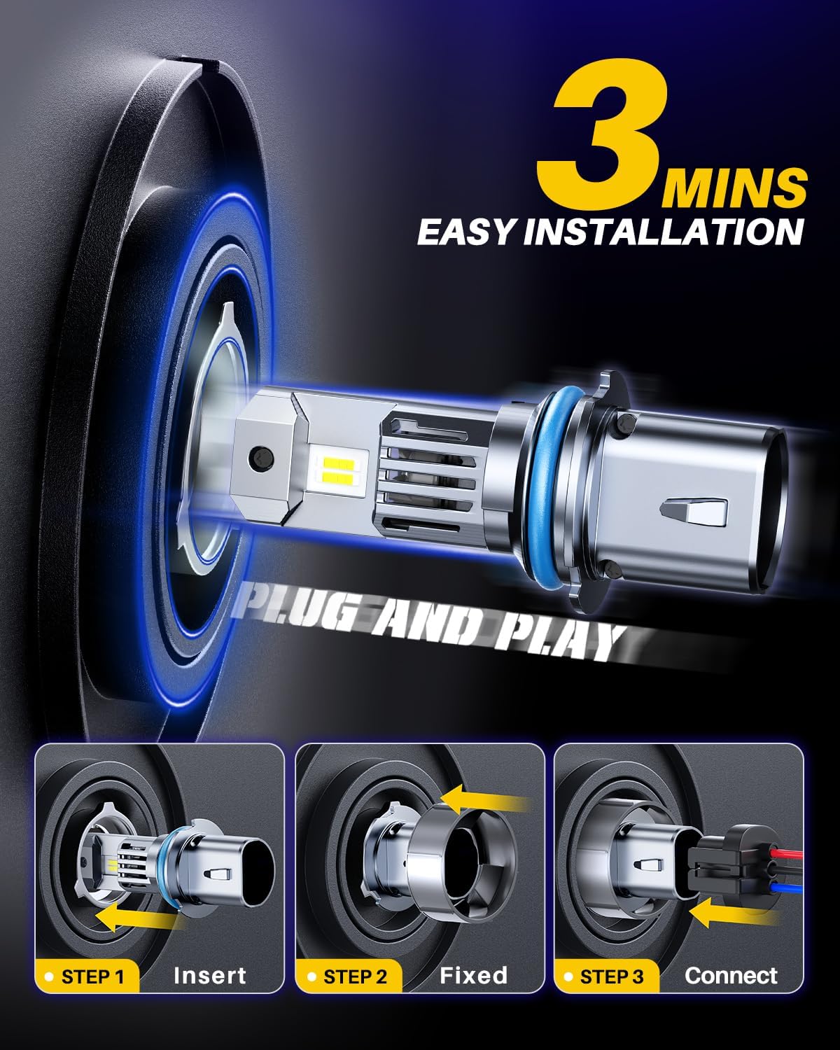 -Then, insert AUTOONE 9004 led bulbs in.