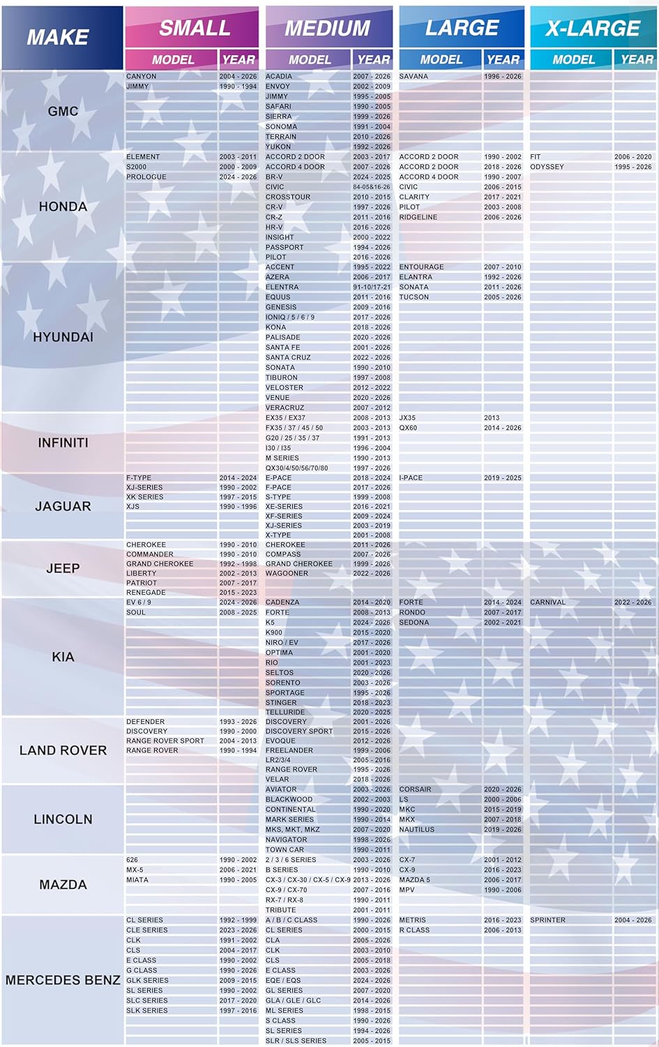 Find Your Perfect Fit: Choose from four sizes (small, medium, large, x-large) to find your ideal fit for your car, van, SUV, or truck and cruise down the open road with the true American spirit. (Medium Size: 62″ x 32″)