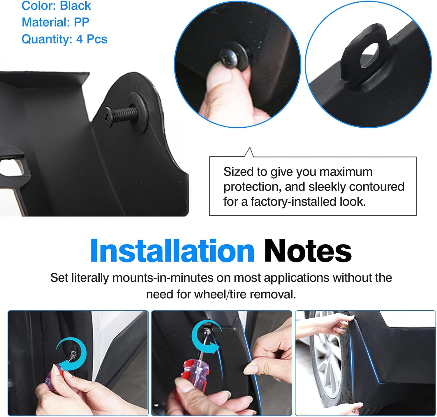 【Essential Accessories for 2022 Tucson】No drilling installation, our Mud Flaps Splash Guards are laser cut, curvature and holes perfectly match the original car. So, it’s a snap to you for installation. Just fix directly with screws without any adjustment.
