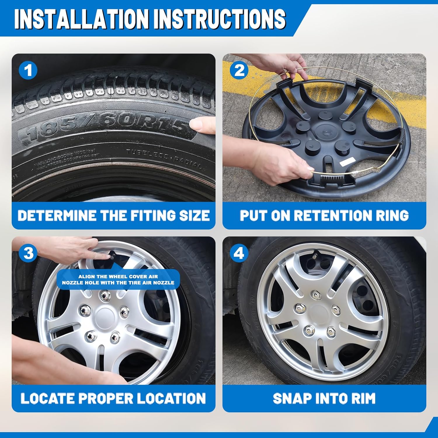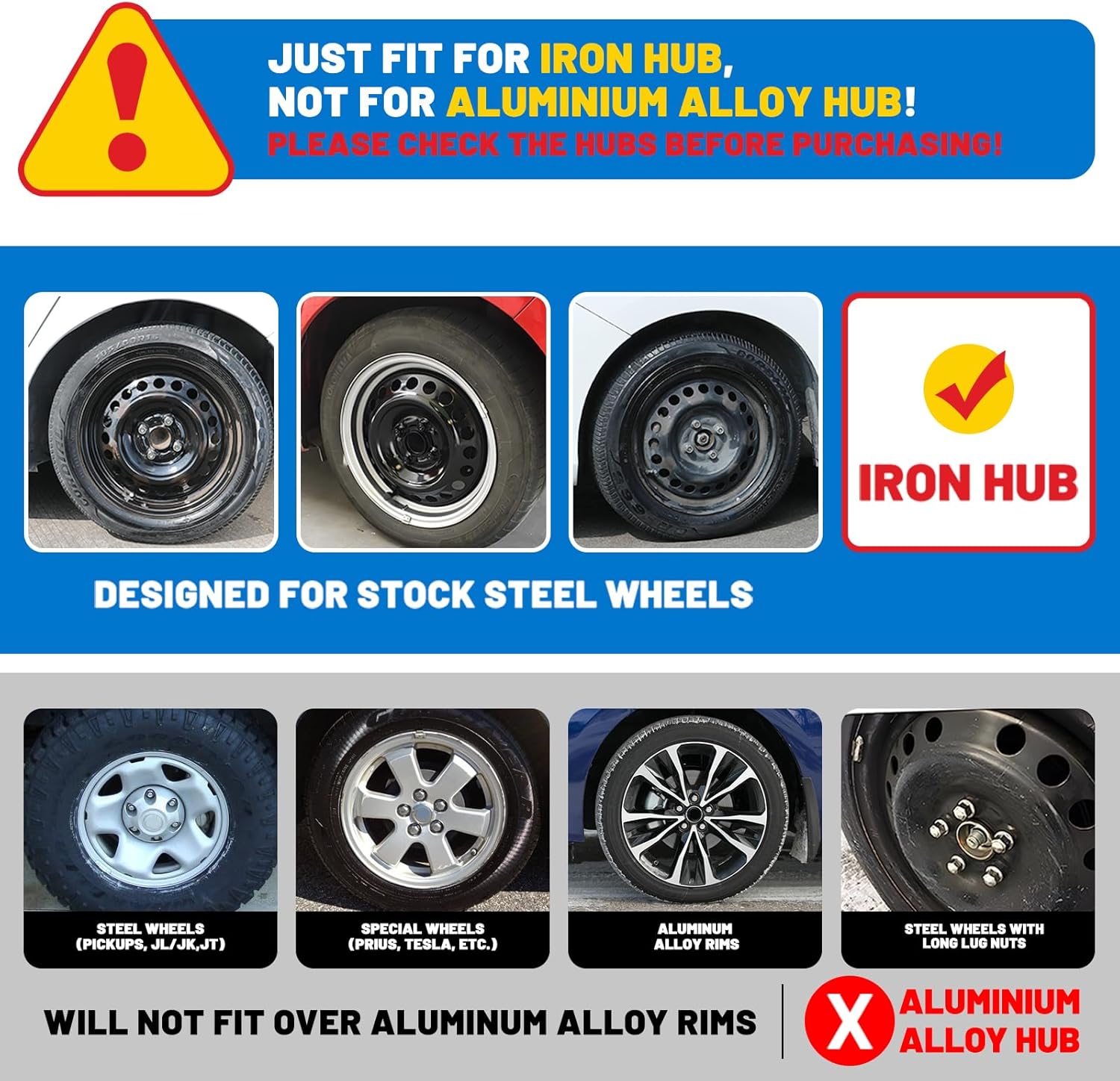 UNIVERSAL FIT – The hubcaps is designed for 15″ iron wheels, does not apply to aluminum wheels and wheels that are too high in the center. Please check carefully before purchasing!