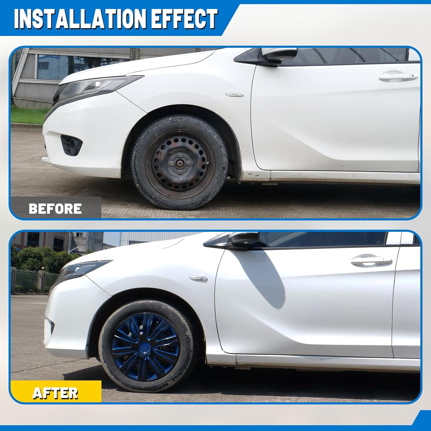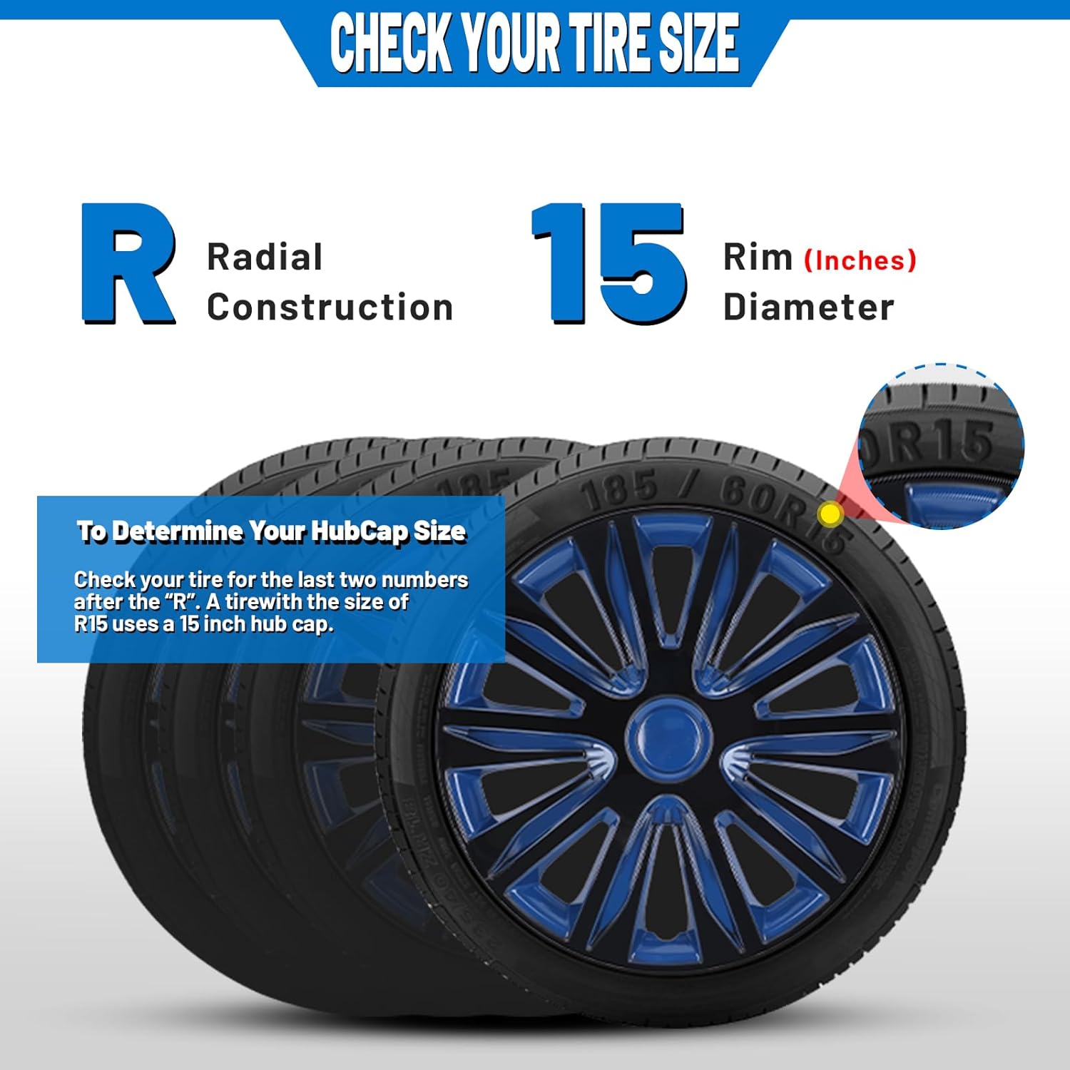 AUTOWIKI 15-Inch Wheel Rim Covers Universal, Hubs Cap Snap on Car Truck SUV ABS Plastic OEM Replacement Fashion Design- R15 Wheel Rim Covers Set of 4 Black Lacquer&Blue Lacquer