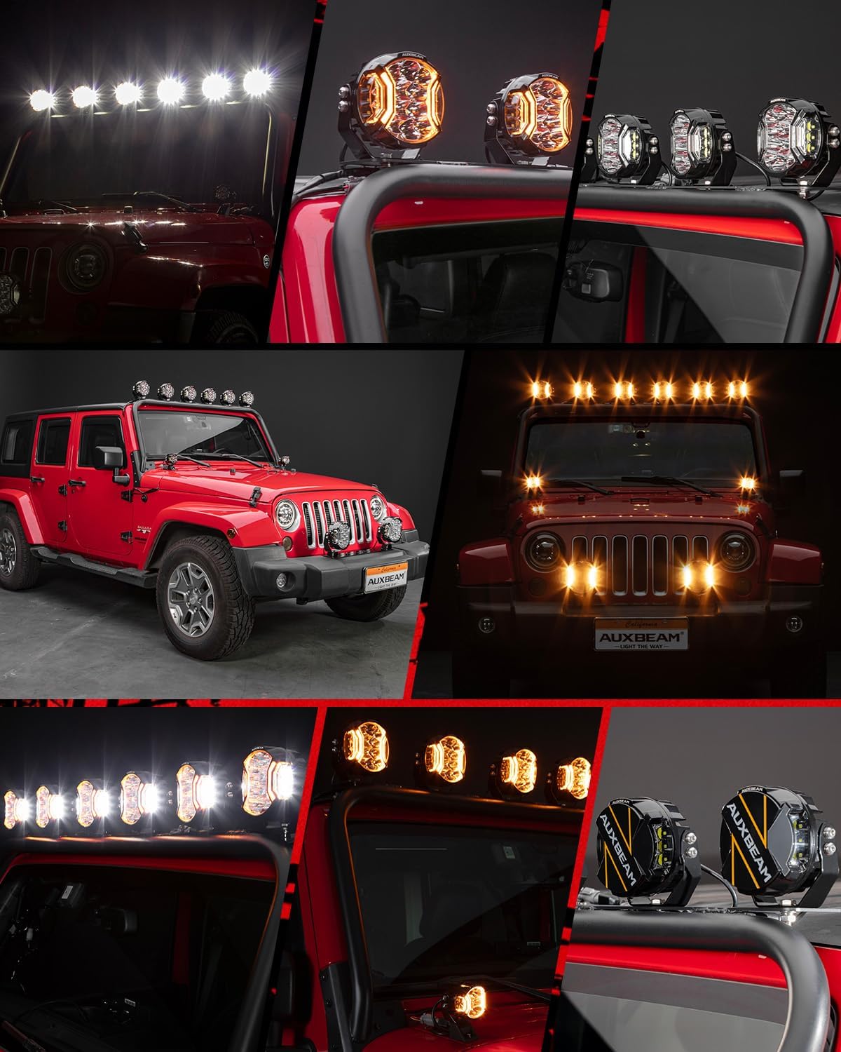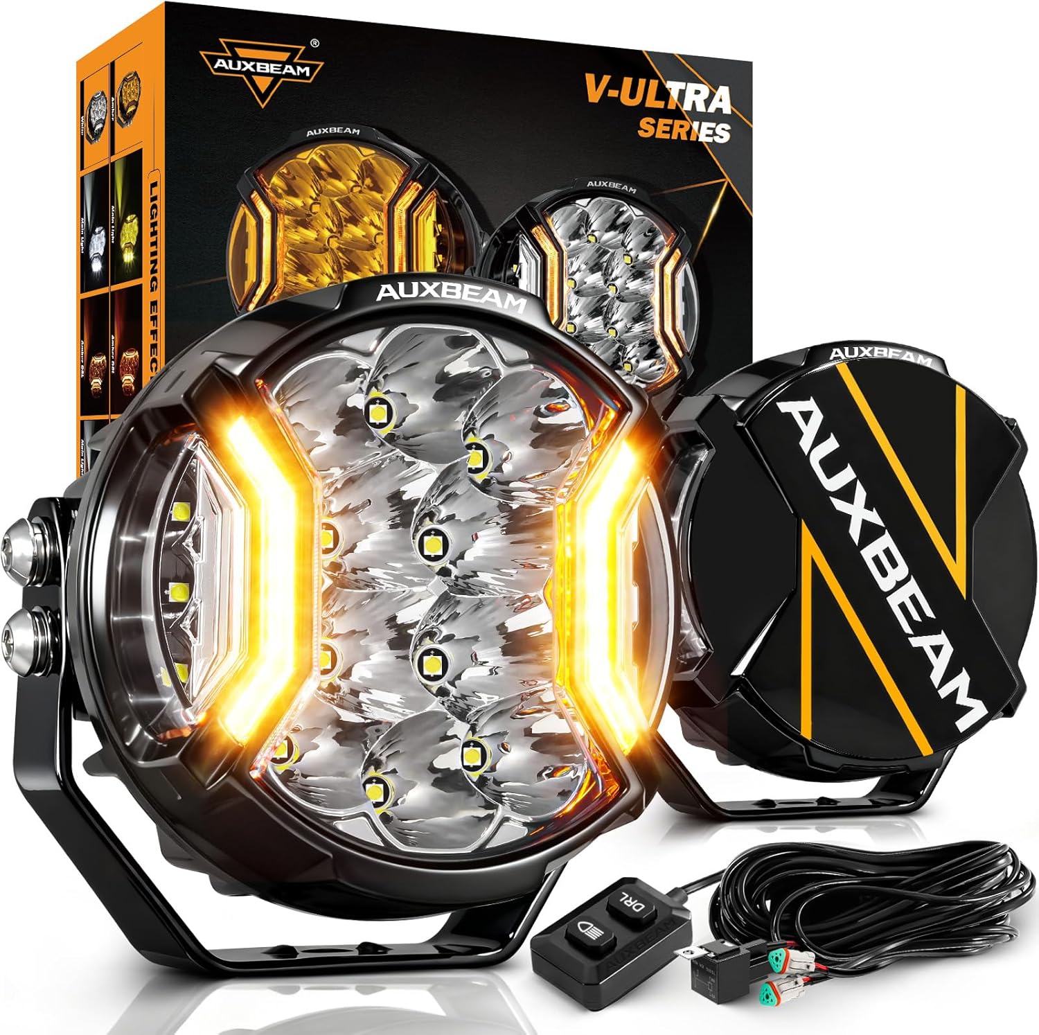 9 reviews for Auxbeam V-Ultra Series Side Shooter Light Bar, 5Inch 172W Round Offroad Lights LED Pods 20400LM, Amber DRL & Spotlight Dual Color 270° Wider Off Road Lighting with Protective Covers, Pair