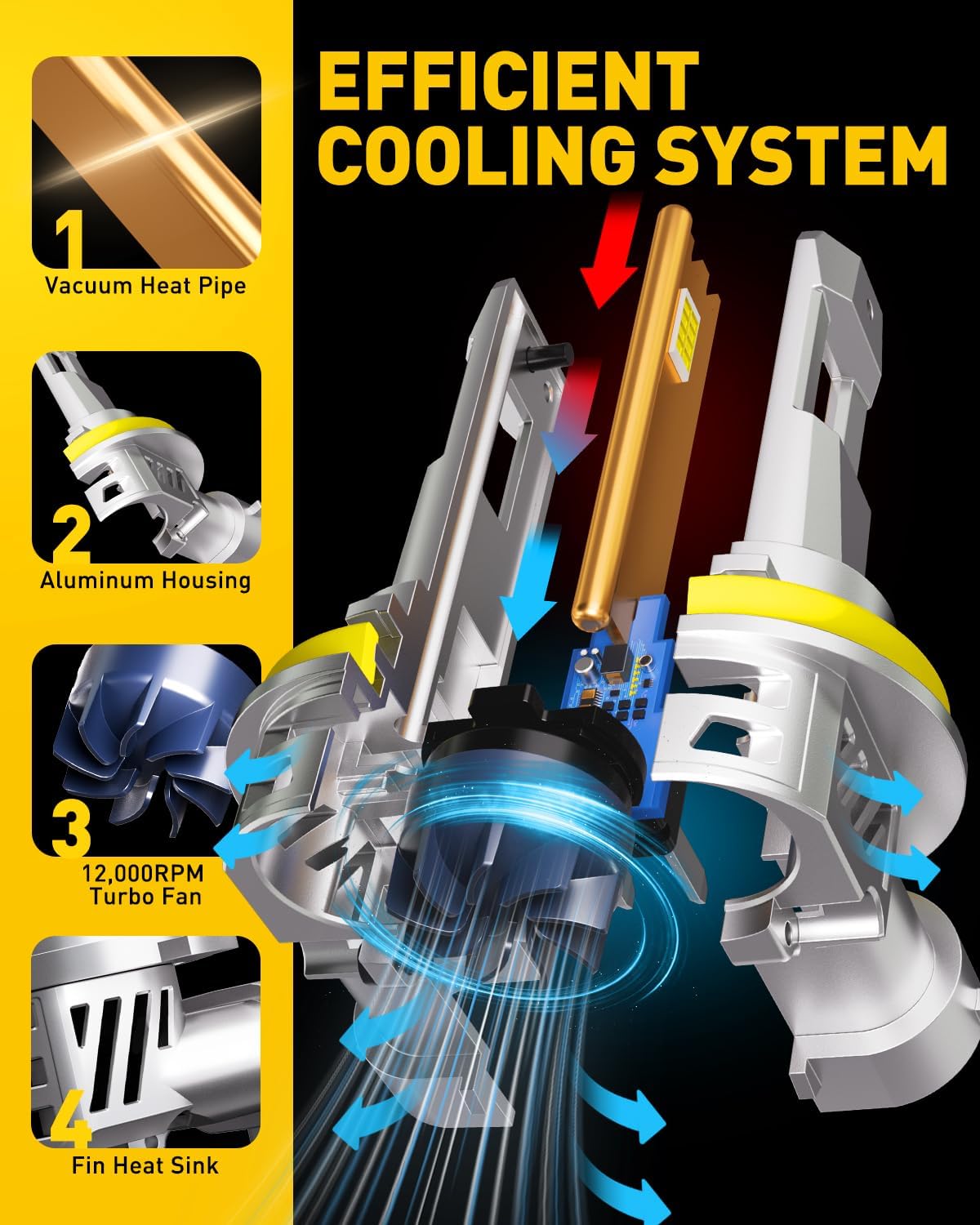 The latest internal IC driver solves the issue of flickering and error warning, which can be compatible well with 99% vehicles with h11 bulbs