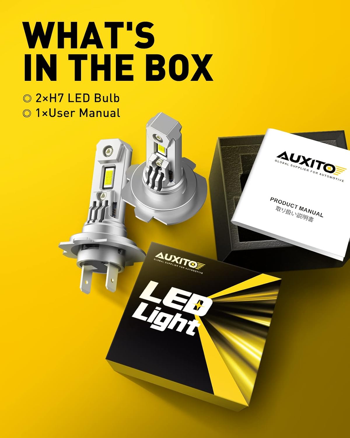 【1:1 Design, No Adapter Required】Unlike other LED lights, AUXITO h7 have no plastic plug, no external driver and no bulky base, fully all-in-one mini size. No adapter required, avoid all kinds of installation issues, non-polarity just plug and play without any modification