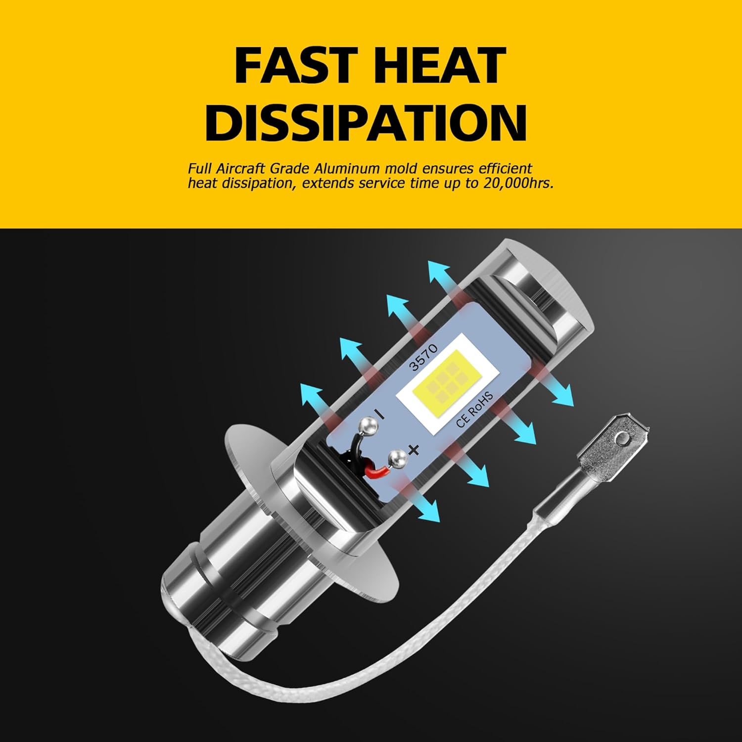【3000 Lumens Bright Output】 Extremely Bright! 2 pieces high illumination and high power 3570 LED chips offer 1500 lumens per H3 LED fog light bulb, total 3000 lumens per pair. Voltage: 12-24V, Color: 6000K Xenon White.