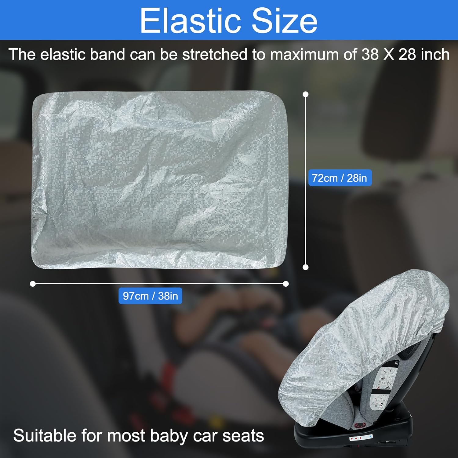 Compatible with Most Infant Car Seat: The elastic band design can be stretched to maximum size of 38 x 28 inches that allows to fit most baby car seats.