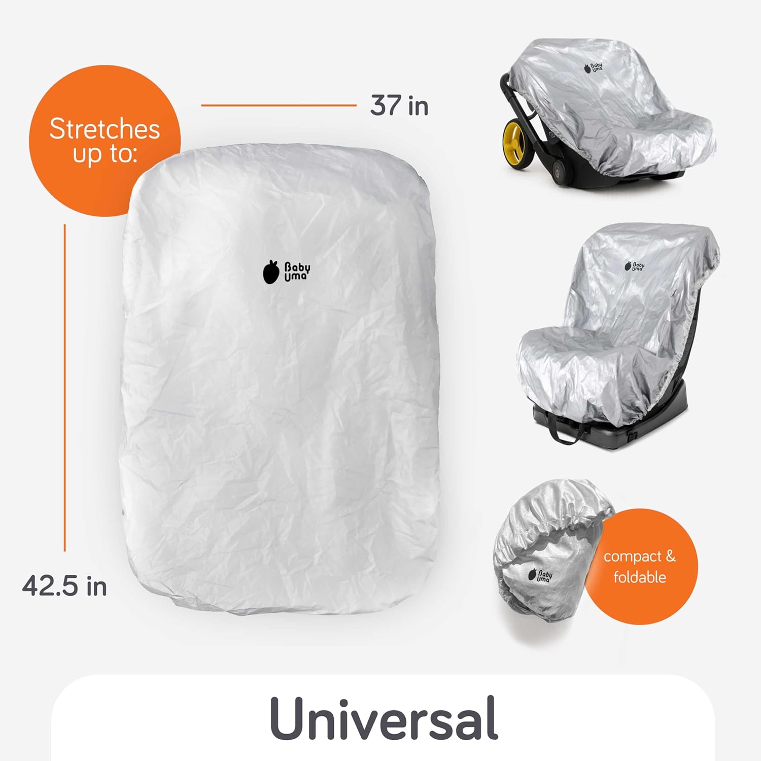 Universal: Measuring 42.5 x 37 inches, this carseat cooler cover stretches to fit most baby car seats! It folds up easily for compact storage in your glove compartment, perfect for road trips or everyday use.