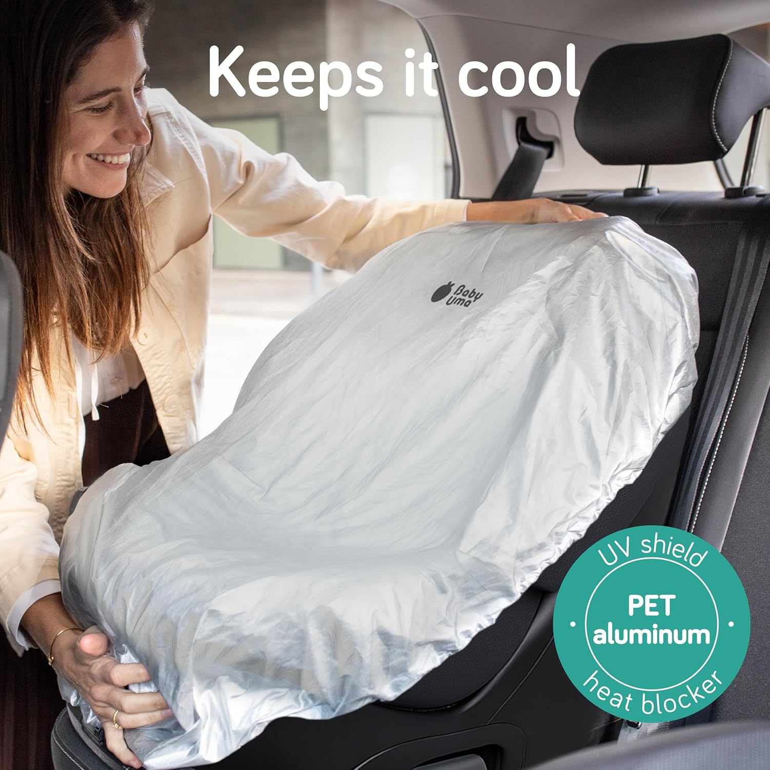 Keeps it cool: Keep your baby car seat cool on hot summer days with Baby Uma’s cooling car seat cover! The car shade reflects the heat, protects against UV exposure, and helps prevent heat damage.