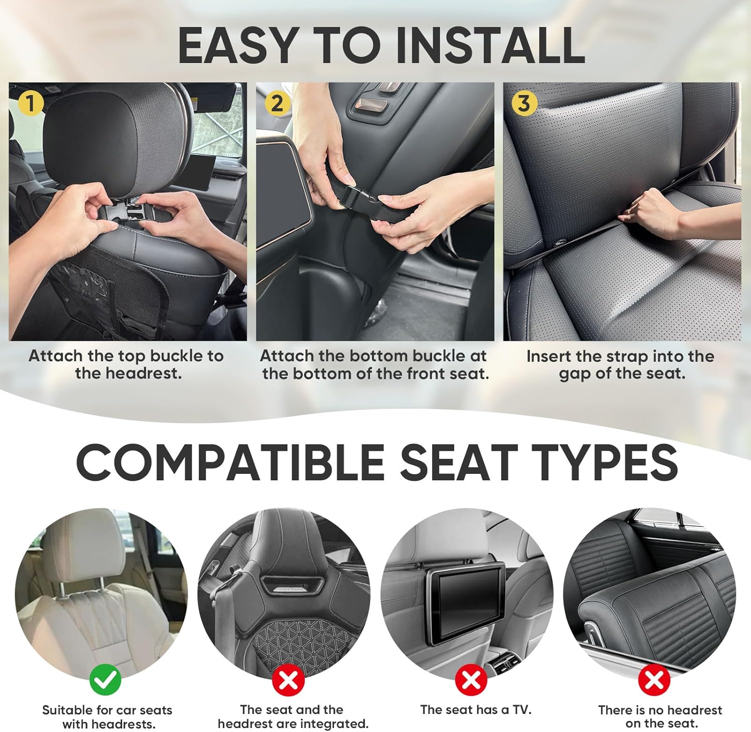 Reinforced Design: Heavy-duty straps and thickened buckles on the car back seat organizer provide extra strength and resist breaking, ensuring long-lasting durability and secure fastening