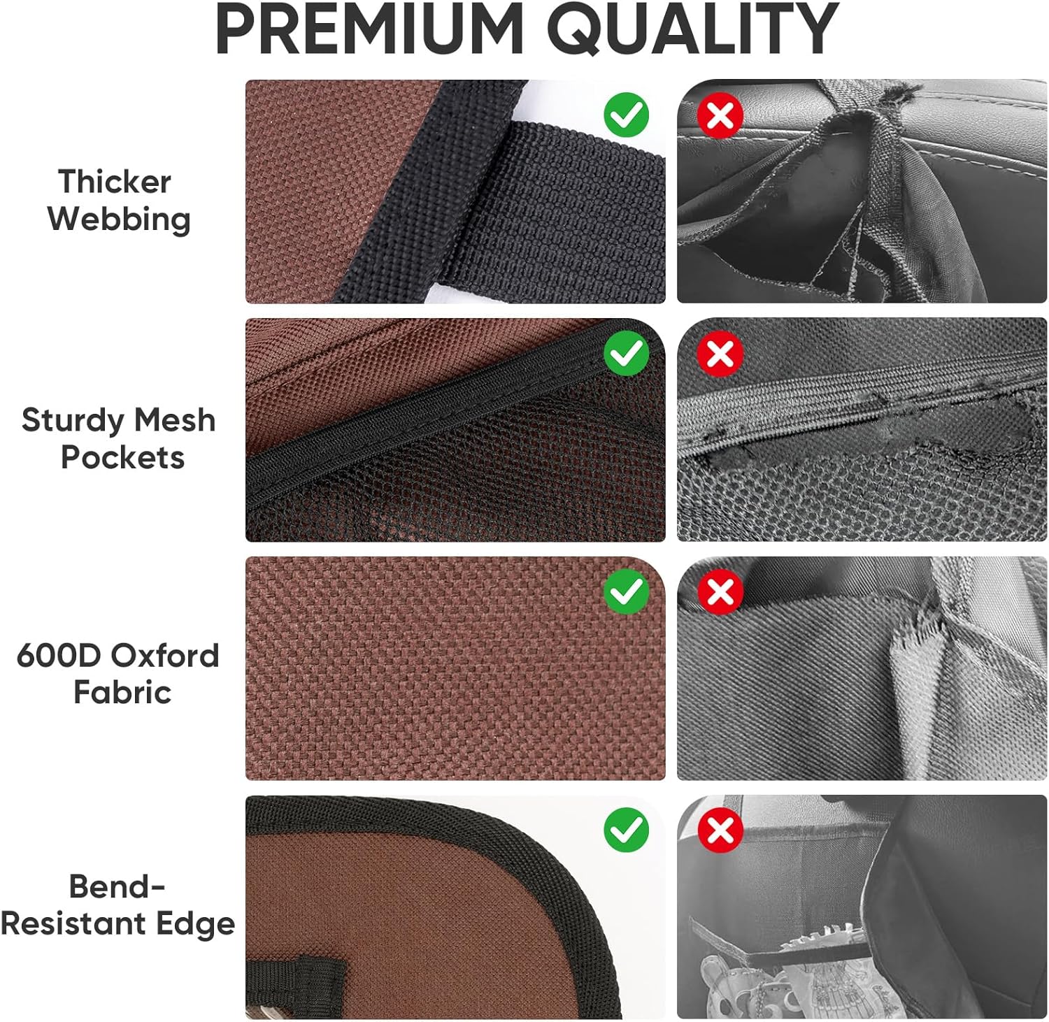 Durable & Prevent Sagging: Made from durable 600D Oxford fabric with reinforced corners, these car organizers are waterproof, dirt-resistant, and easy to clean; The reinforced corners provide added support to prevent sagging even when fully loaded