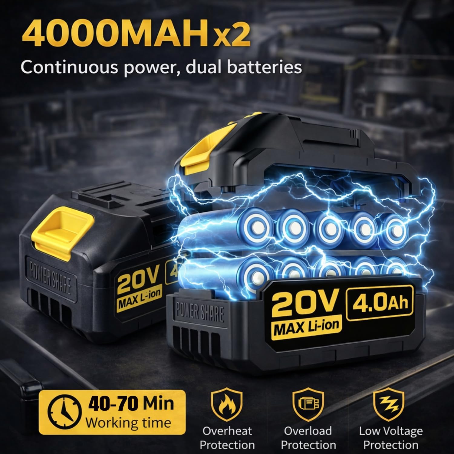 DUAL BATTERIES FOR LONGER RUNTIME: No more interruptions. This battery operated pressure washer comes with 2 pack 20V 4000mAh batteries, offering a total of 40-70 mins of runtime with battery indicator and 2-hour fast charger. Ideal for finishing the entire backyard or all your garden furniture in one go