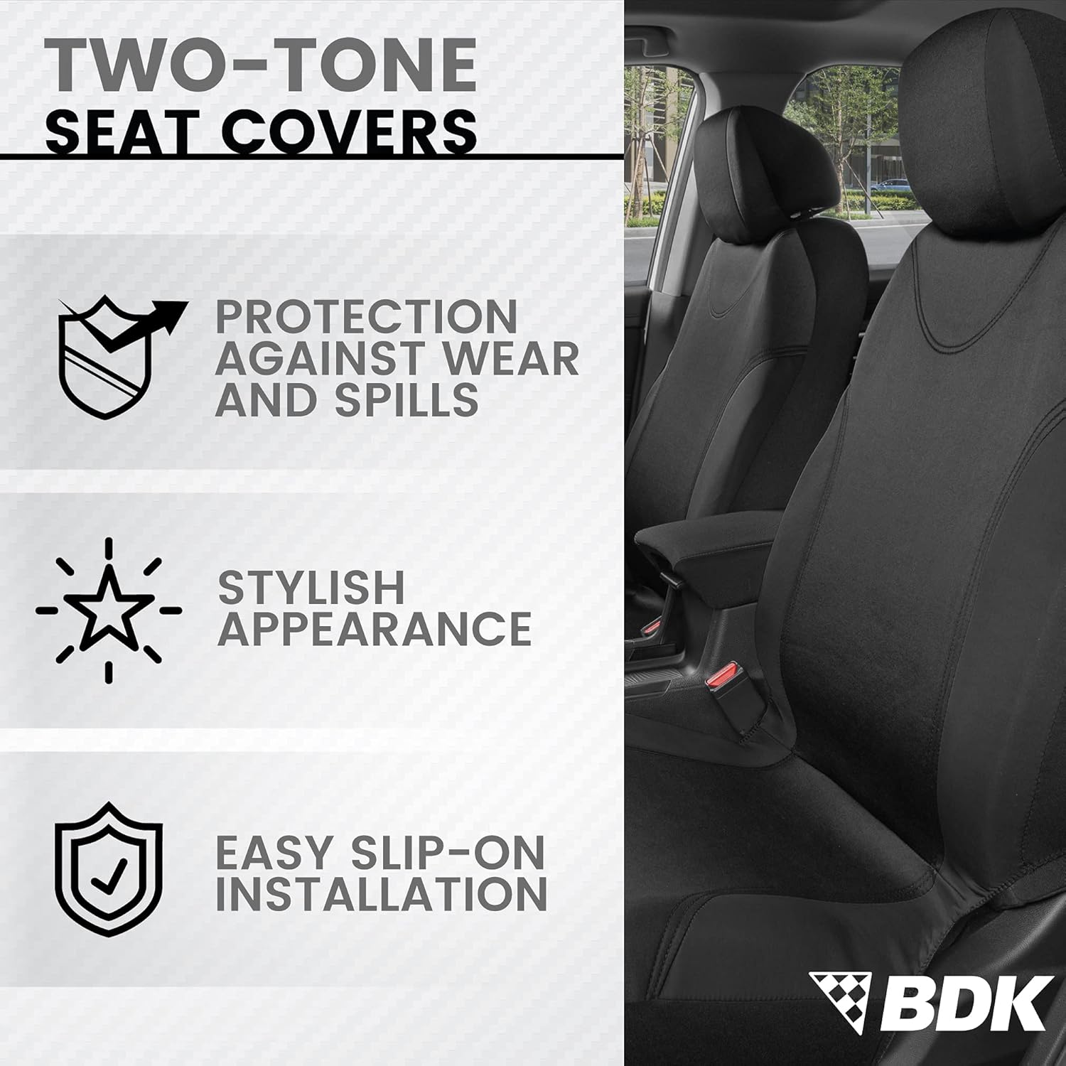 BDK UltraSleek Front Seat & Back Seat Car Seat Covers 2-Tone Matching Full Set for Cars, SUVs, Trucks, & Minivans: