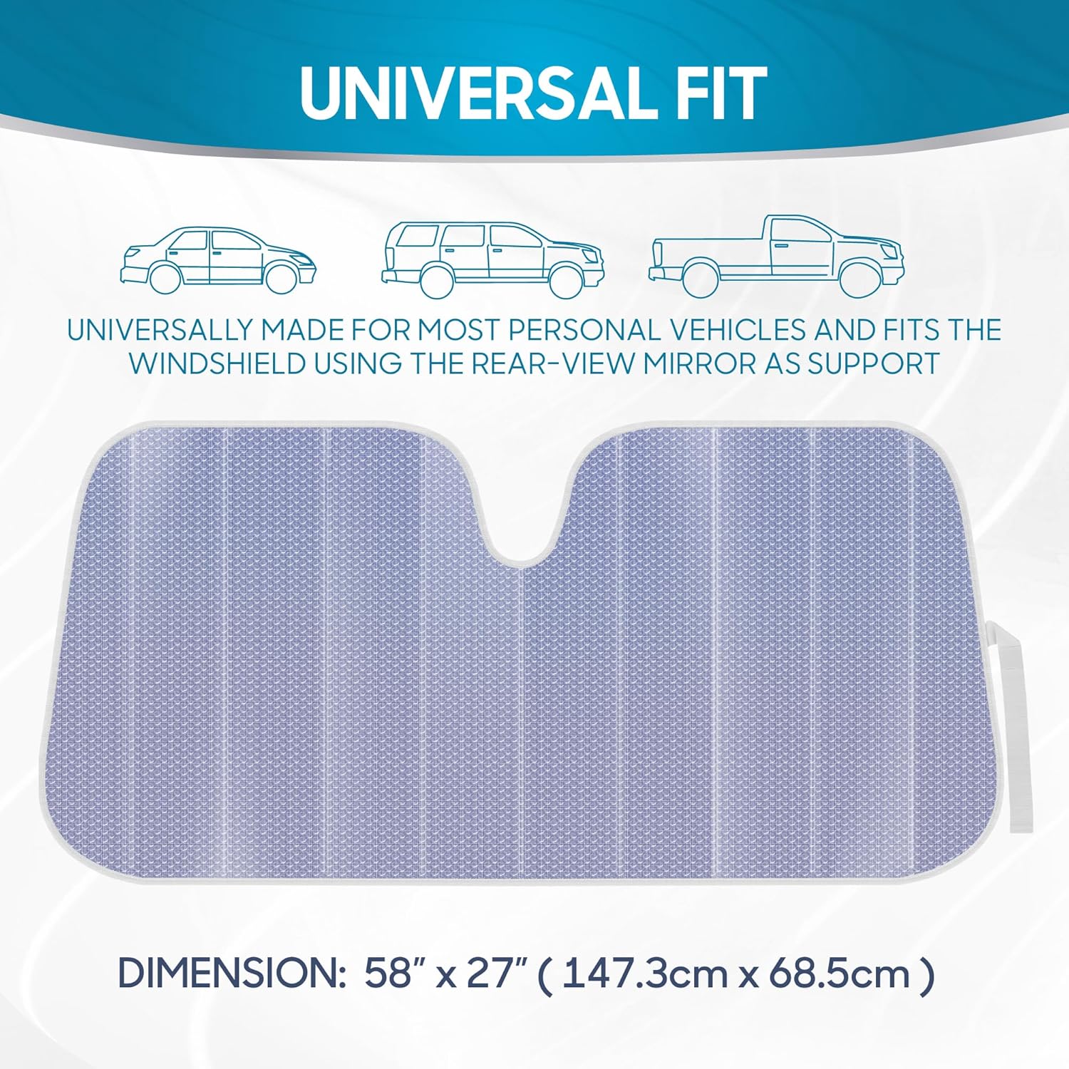 100% UV PROTECTION: Dual-Layer Bubble design for maximum protection for your vehicle’s interior, this sun shade for car windshield will keep your seats and steering wheel cool by blocking the sun’s heat and harmful UV radiation rays.