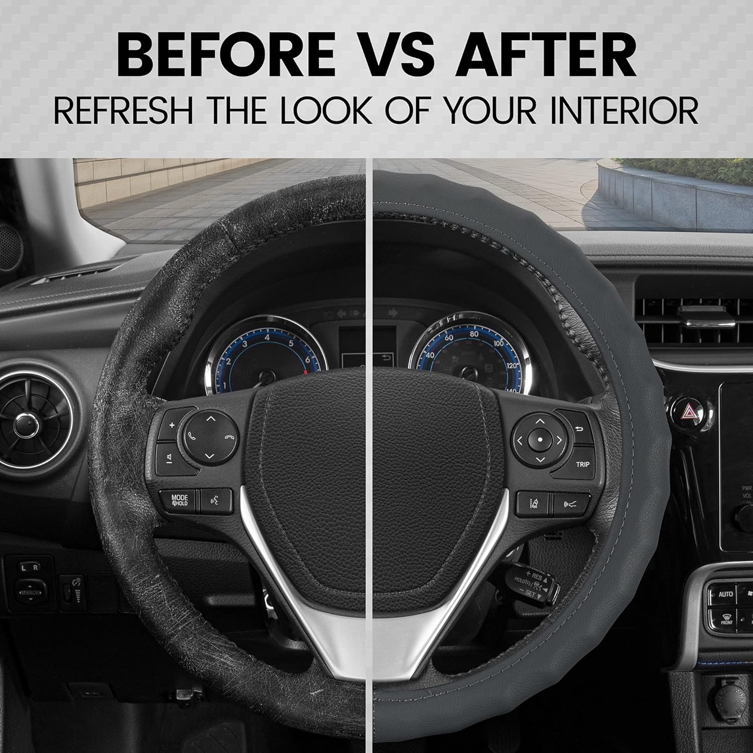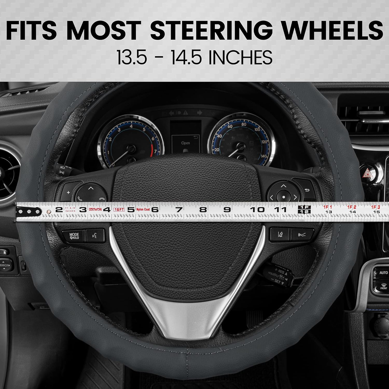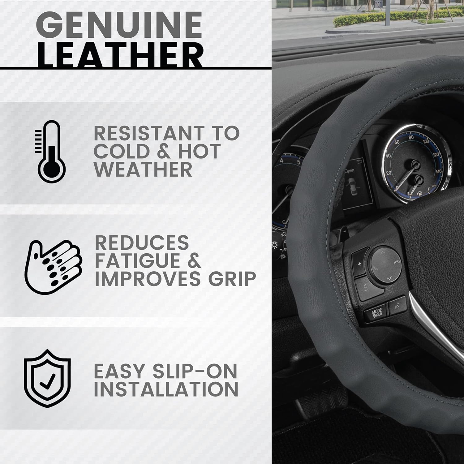 8 reviews for BDK Leather Car Steering Wheel Cover Size 13.5 to 14 inch, Easy Installation, Small, Gray