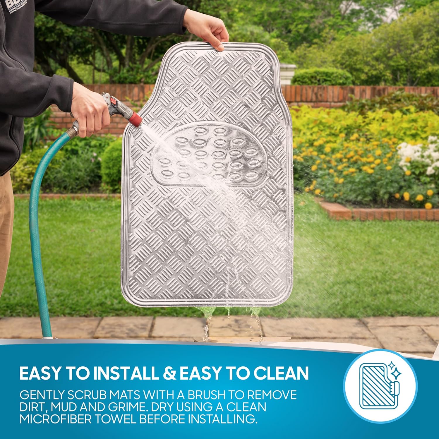 EASY-TO-CLEAN – Maintain a spotless interior effortlessly with these easy-to-clean car floor mats—simply wipe, shake, or rinse to remove dirt, mud, and spills in seconds.