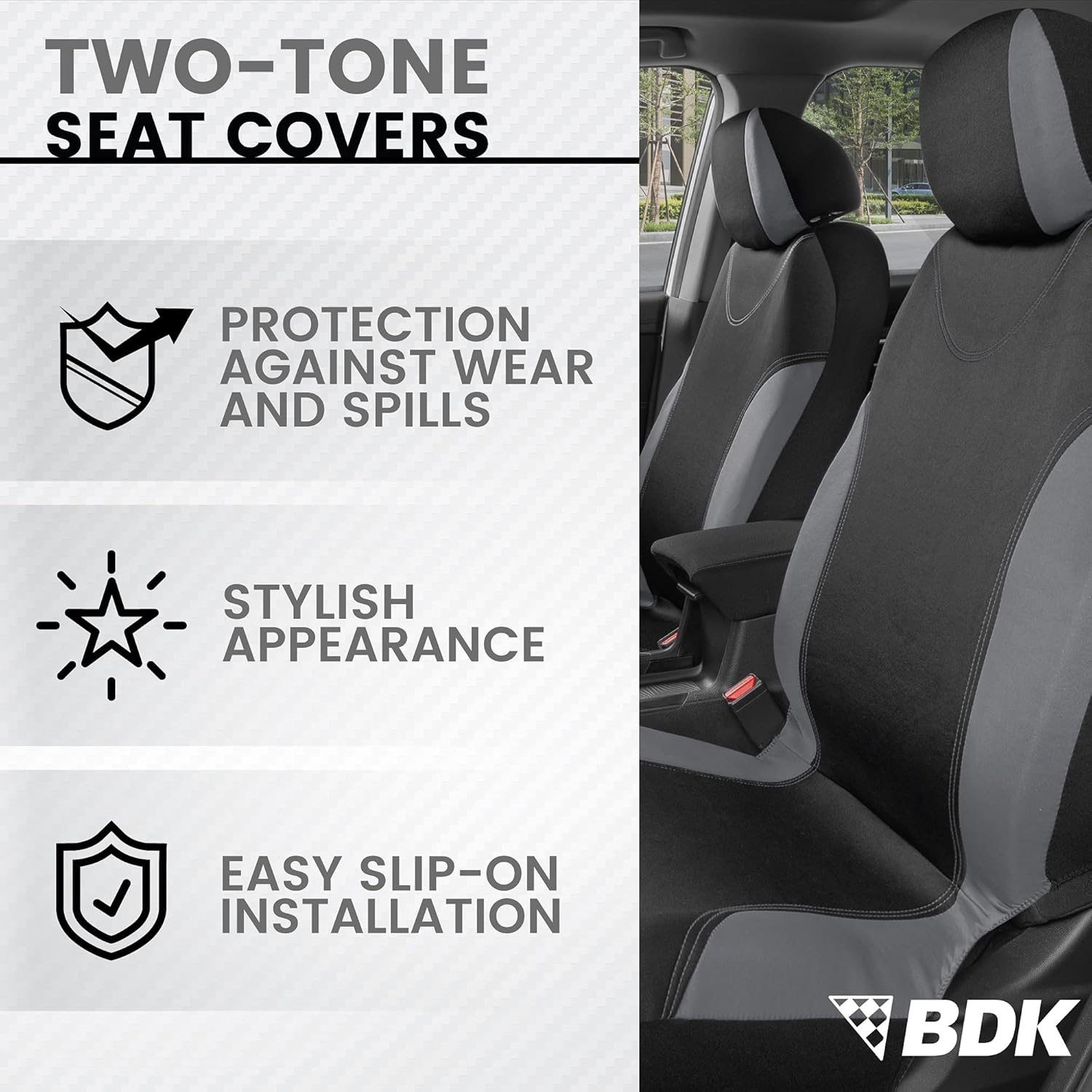 BDK UltraSleek Front Seat & Back Seat Car Seat Covers 2-Tone Matching Full Set for Cars, SUVs, Trucks, & Minivans: