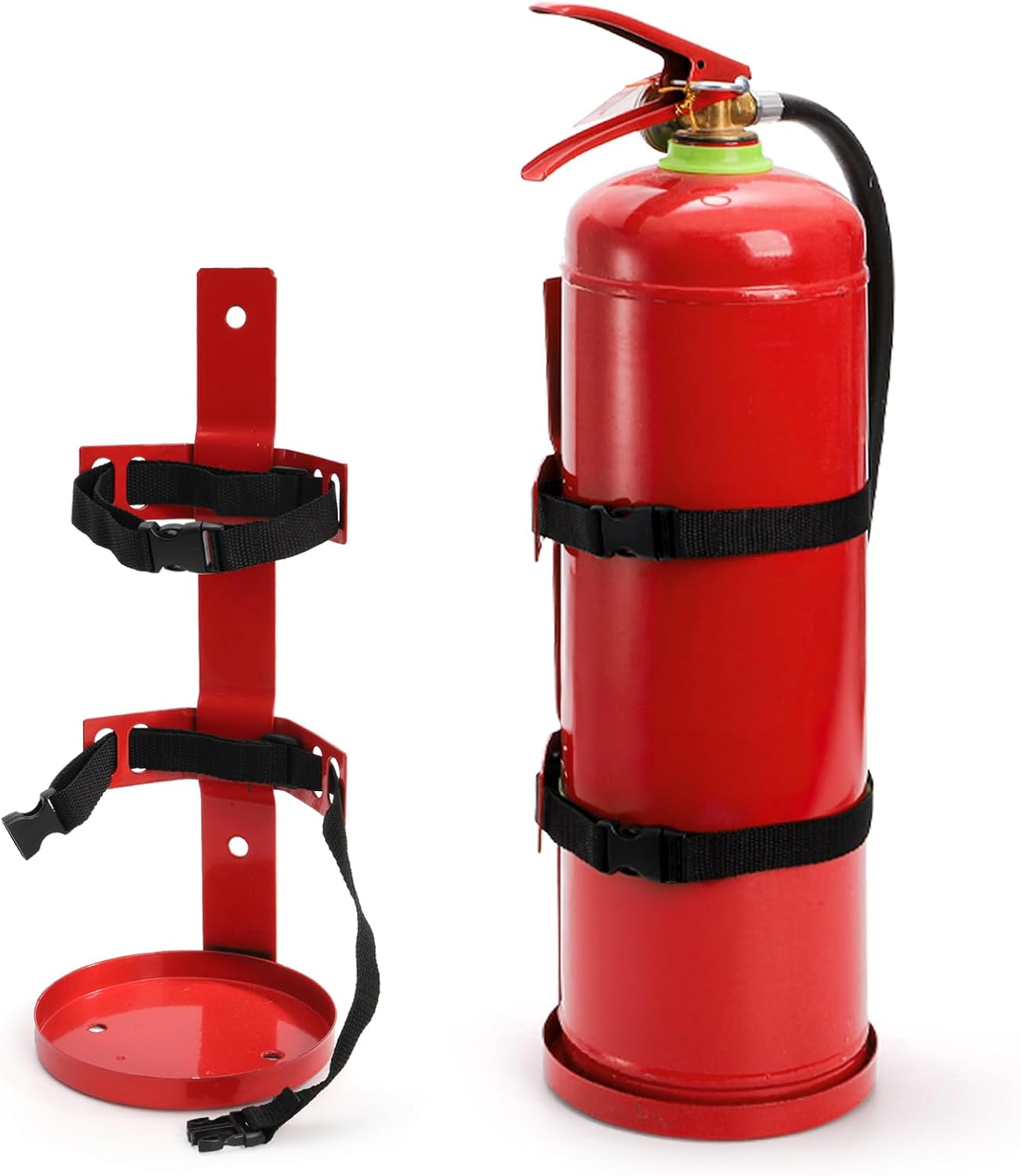 Bekith 2 pack fire extinguisher bracket can be used in ships, factories, offices, shops, warehouses, homes, cars and other scenes. Powder-coated steel construction.