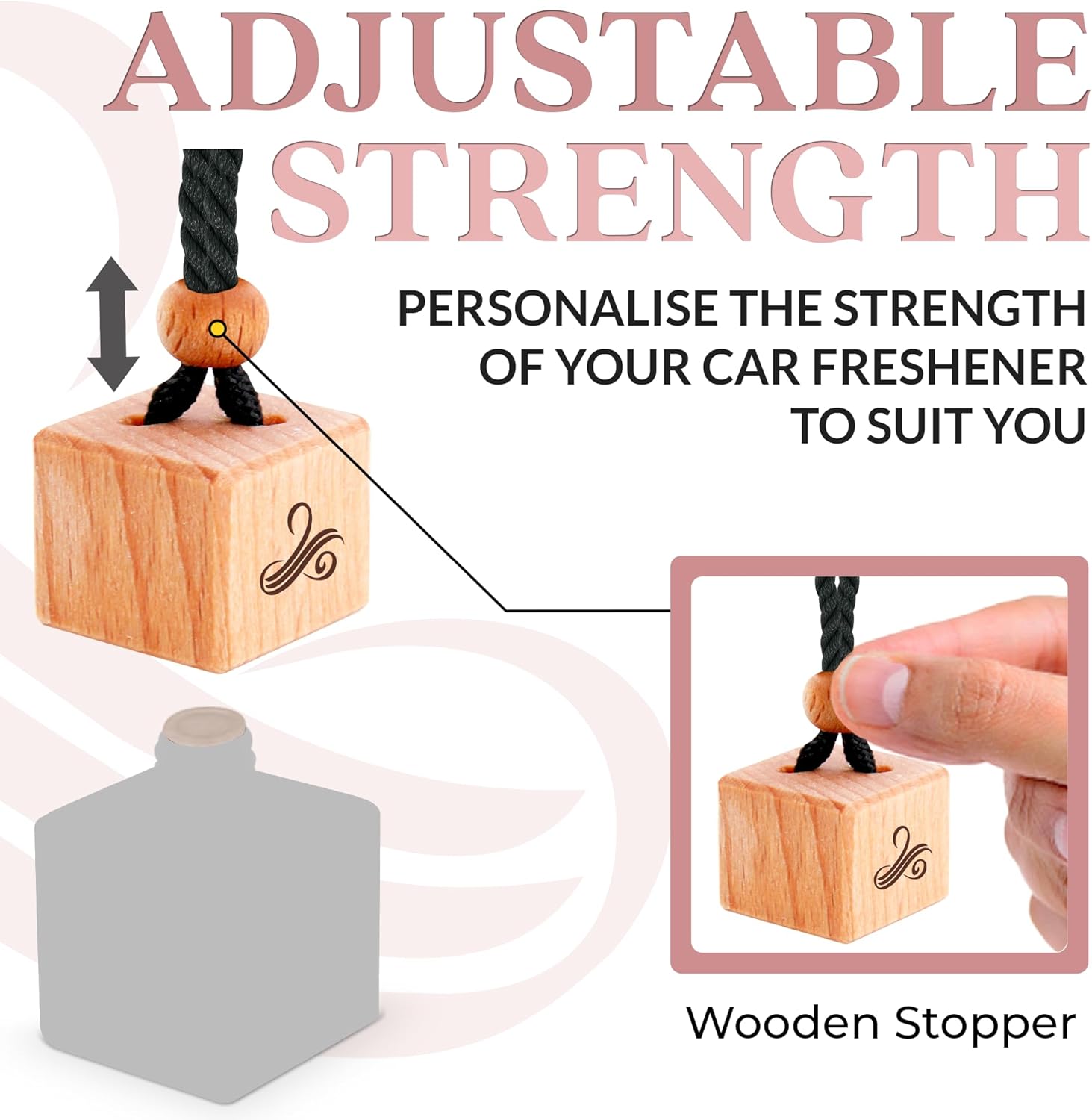 ADJUST THE STRENGTH TO SUIT YOU – Take control of your air freshener diffuser for car and personalize your driving experience. This air freshener car hanging and customizable car perfume diffuser allows you to set the intensity of your car scents—simply slide the wooden stopper up or down the diffuser cords to match your mood or preference. Your car, your fragrance, your rules.