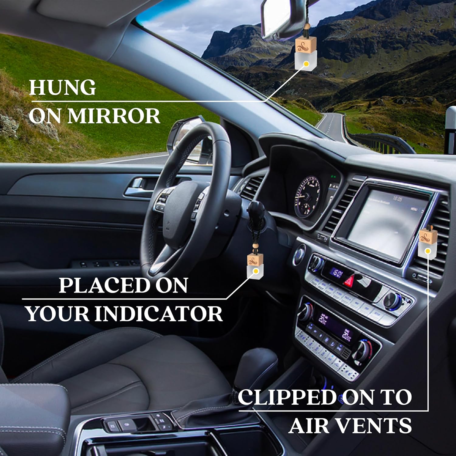 MADE WITH REAL ESSENTIAL OILS – This aromatherapy car fragrance diffuser is infused with real essential oils designed to enhance your mood and maintain focus. Whether used as an air freshener car hanging or paired with car vent clips, it’s the perfect car fresheners for women for long drives—bringing a touch of luxury and wellness to every journey.