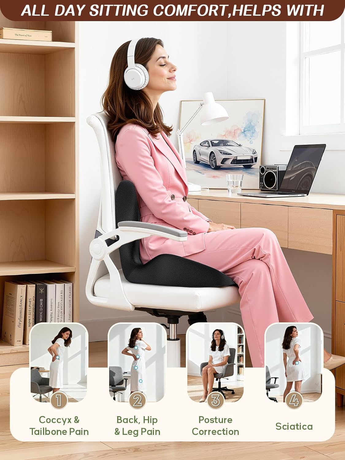 🏅【Sciatica and Back Pain Relief】 The unique contoured shape reduces pressure on the back, hips, and coccyx, and helps maintain proper posture. It naturally fits your spine and hip’s curve, effectively relieving upper, mid, lower back pain and sciatica.