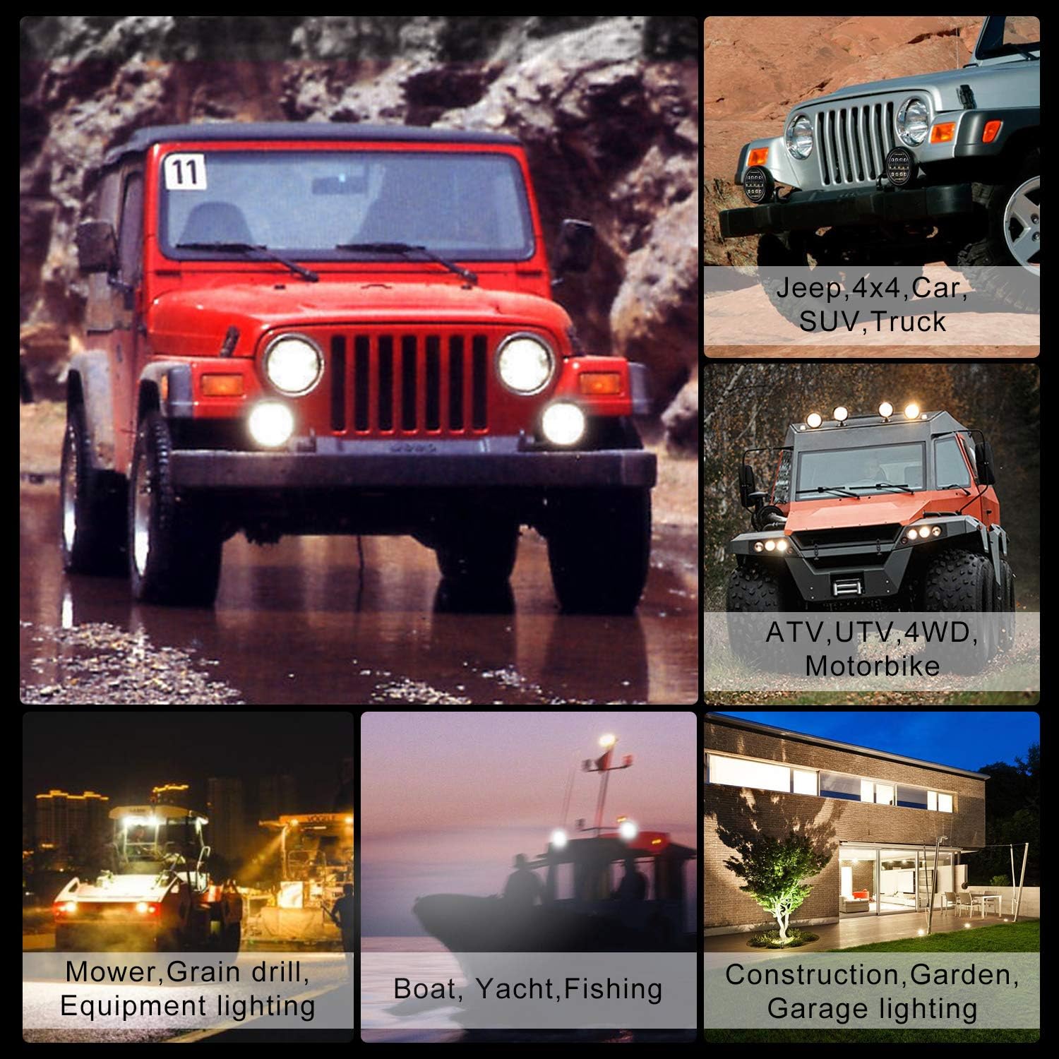 Extended Utility: This round led off road lights is compatible with almost all 4×4, trucks, tractors, trailers, pickups, cars, motorcycles, SUVs, ATVs & boats. Additionally, there are many indoor and outdoor uses: garden lighting, backyard lighting, backup light, off road lighting, reverse lights, construction lighting and more