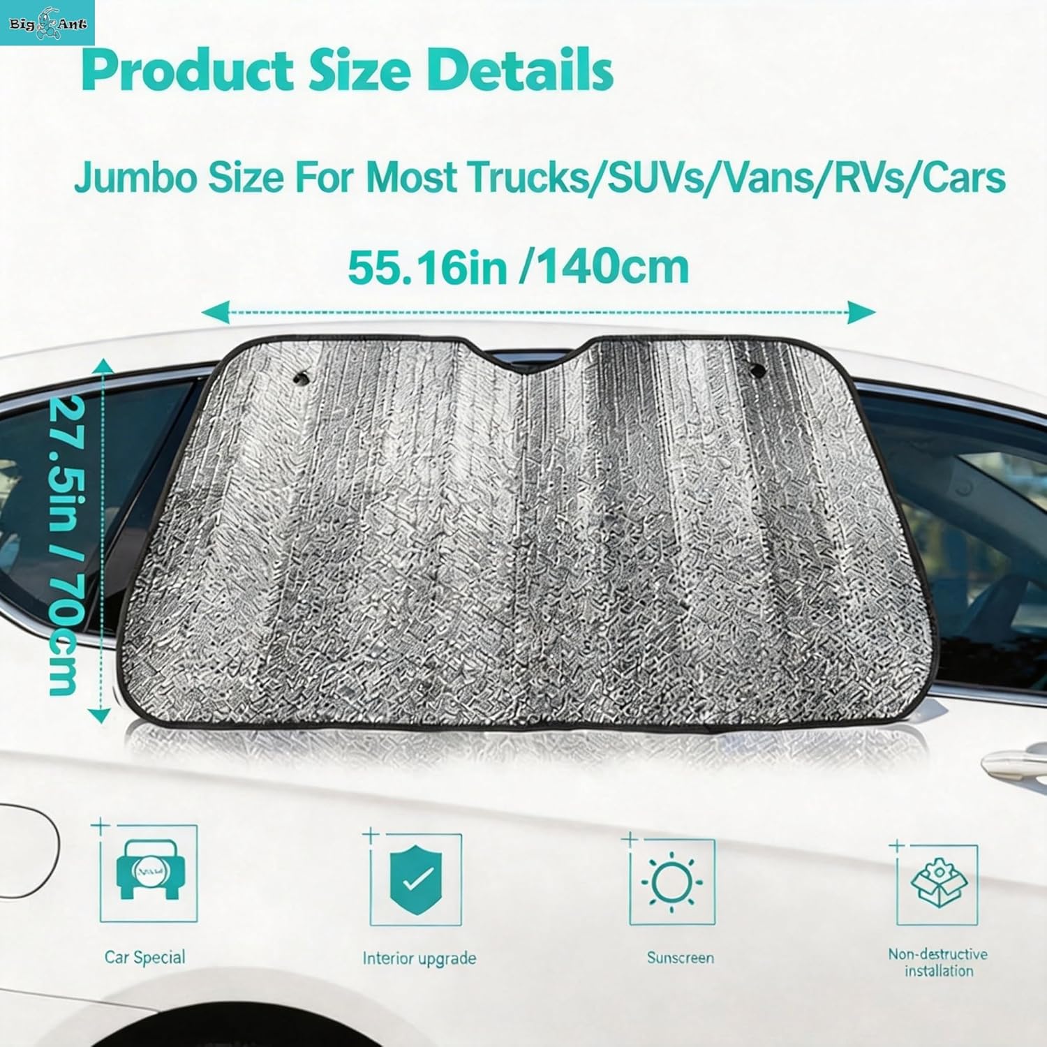 JUMBO SIZE – Perfectly fits most car windshields and is available in Jumbo size (55″ x 27.5″),Please check your windshield size if you have a mini size car