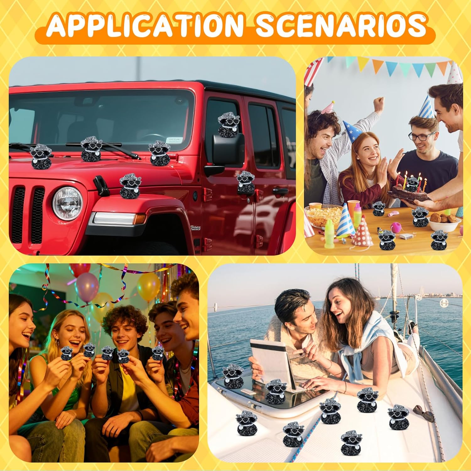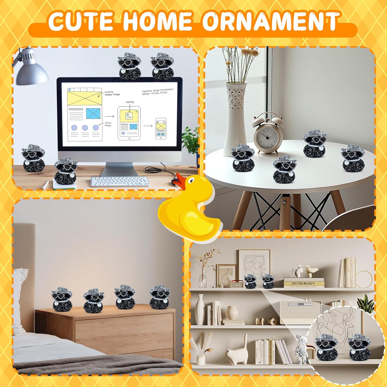 Versatile Decorative Accent Beyond cars, the novelty rubber ducks elevates any space—ideal for desks, offices, living rooms, or bedrooms. A charming gift for adults who love whimsical decor, blending style with lighthearted fun.