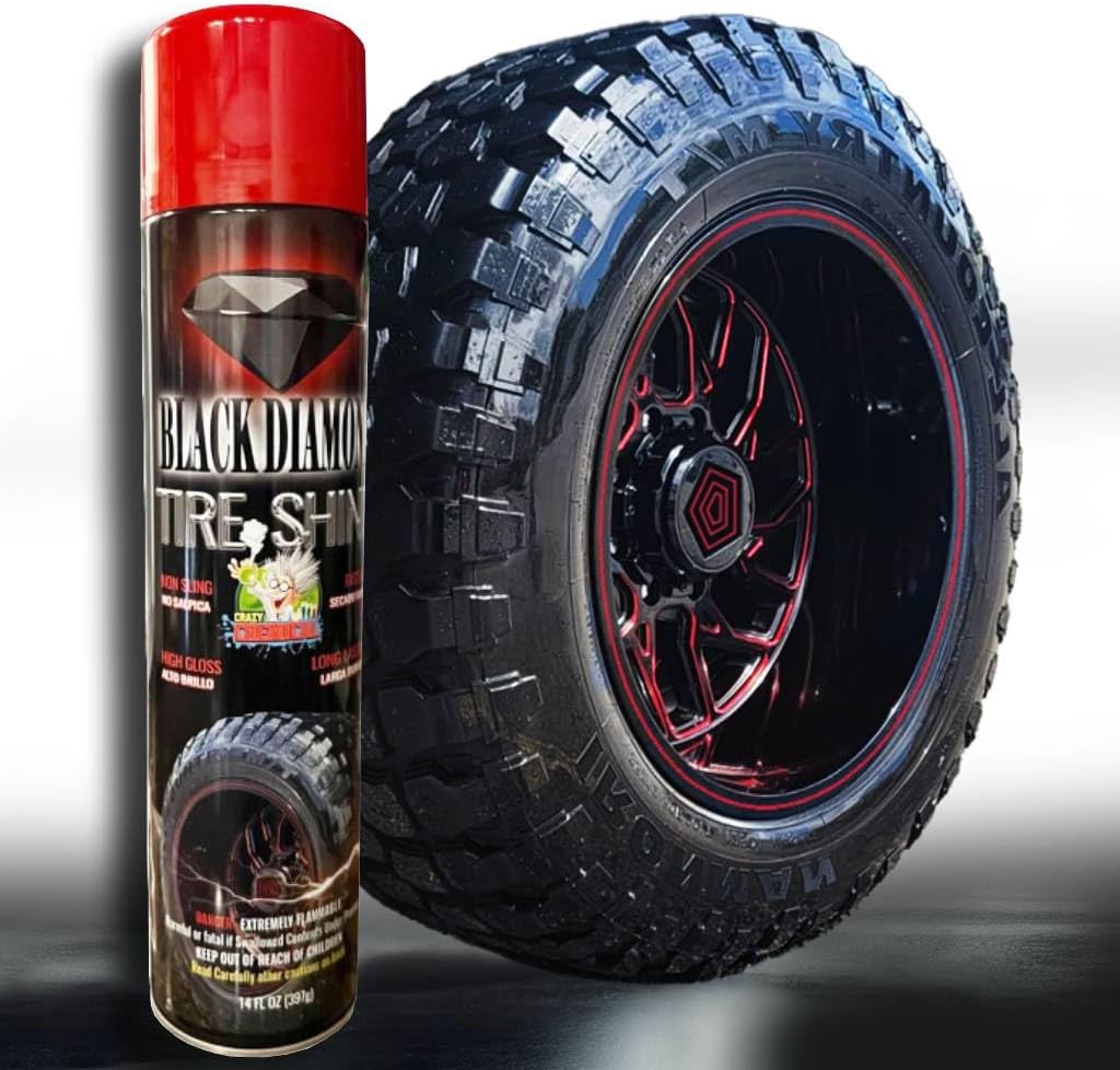 Tired of dull, lifeless tires that detract from your vehicle’s appeal? Crazy Chemical Black Diamond Tire Shine Spray is the ultimate solution for achieving an extreme mirror-like gloss that will completely transform your car’s appearance. Our cutting-edge formula not only delivers a spectacular finish but also creates a long-lasting protective barrier against harmful elements such as rain, dust, road grime, and damaging UV rays. Enjoy flawless, freshly detailed-looking tires for weeks on end.
