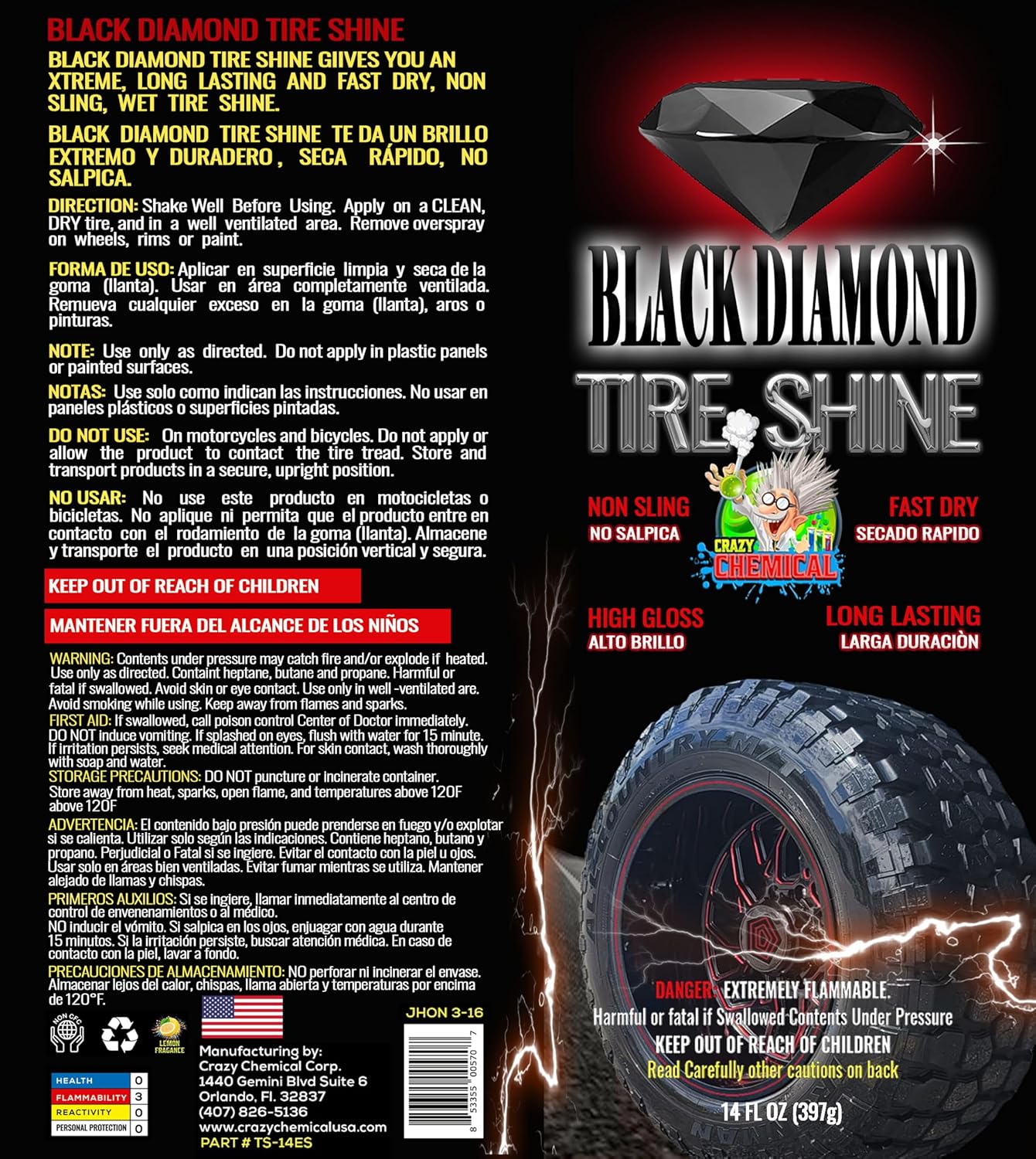 At Crazy Chemical, quality is our top priority. Proudly made in the USA using premium ingredients, Black Diamond Tire Shine is the preferred choice of professional detailers and automotive enthusiasts seeking superior performance and consistent results. Trust in the quality that makes all the difference.