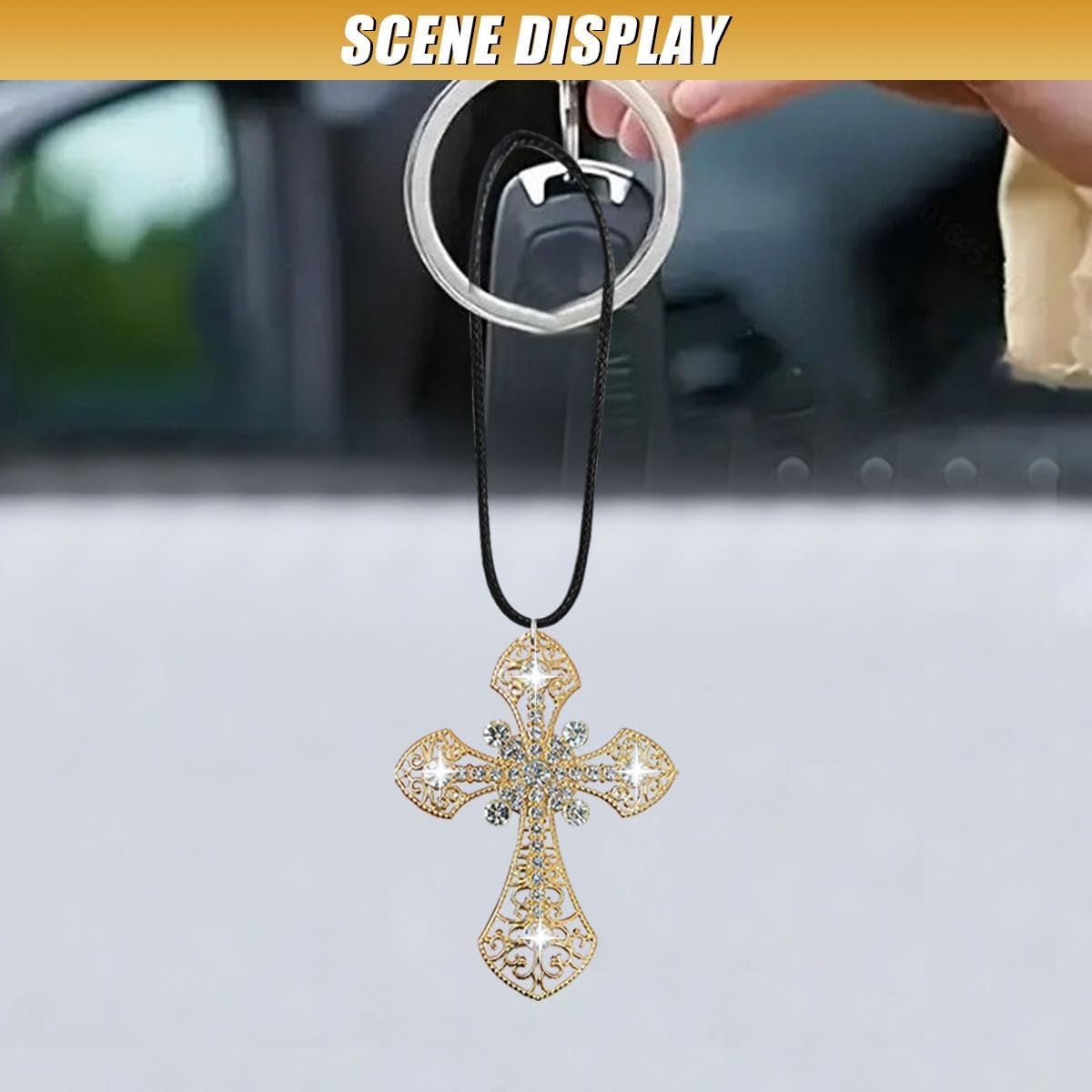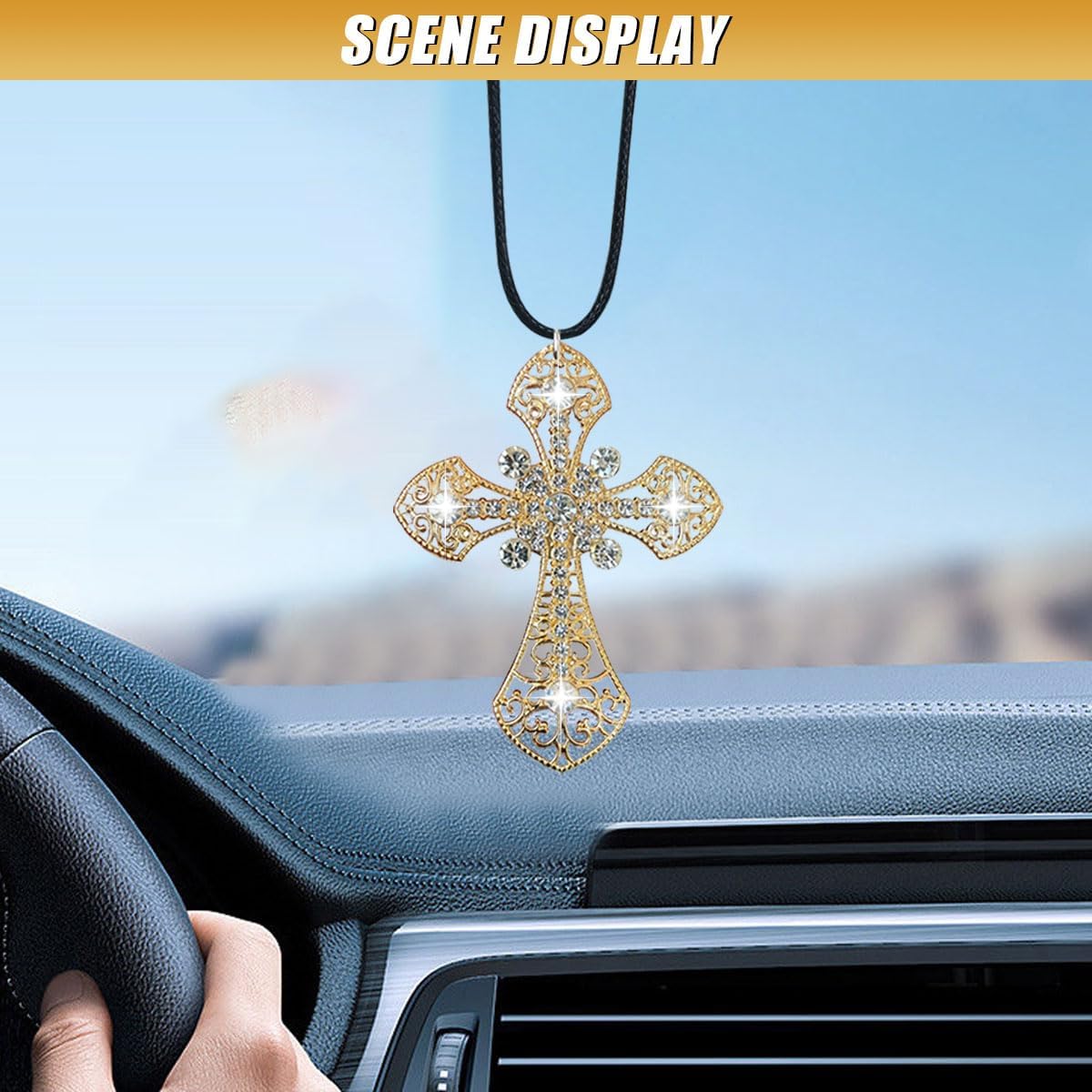 【Personalized Decoration】: Featuring a classic cross design with rhinestone inlays, the car mirror hanging ornament shines brightly in sunlight, adding a touch of luxury to the car’s interior, serving as both a stylish decoration and a way to showcase personal beliefs and taste, infusing every journey with unique charm.