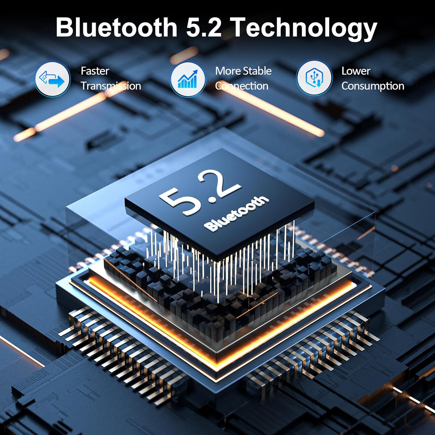 【Bluetooth 5.2】Use of bluetooth 5.2 technology, makes the receiver transmit faster, the transmission signal more stable, the power consumption is lower. Up to 30 m bluetooth distance