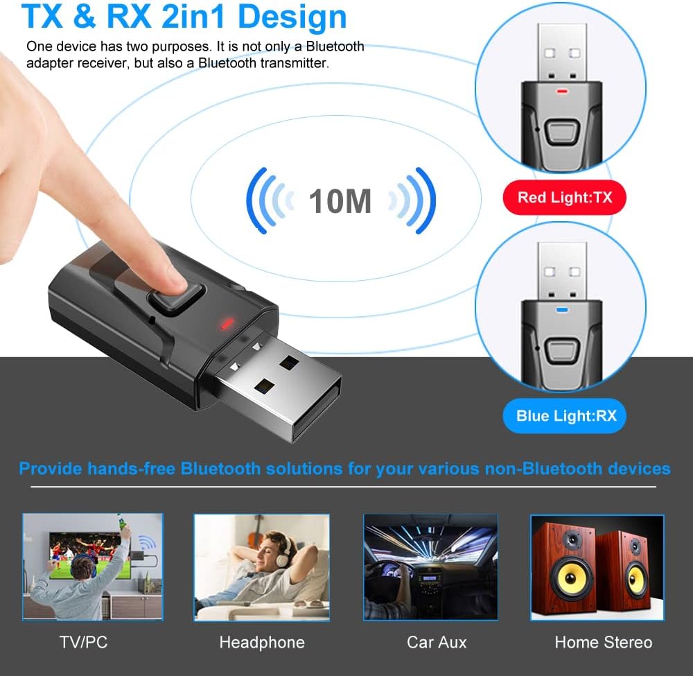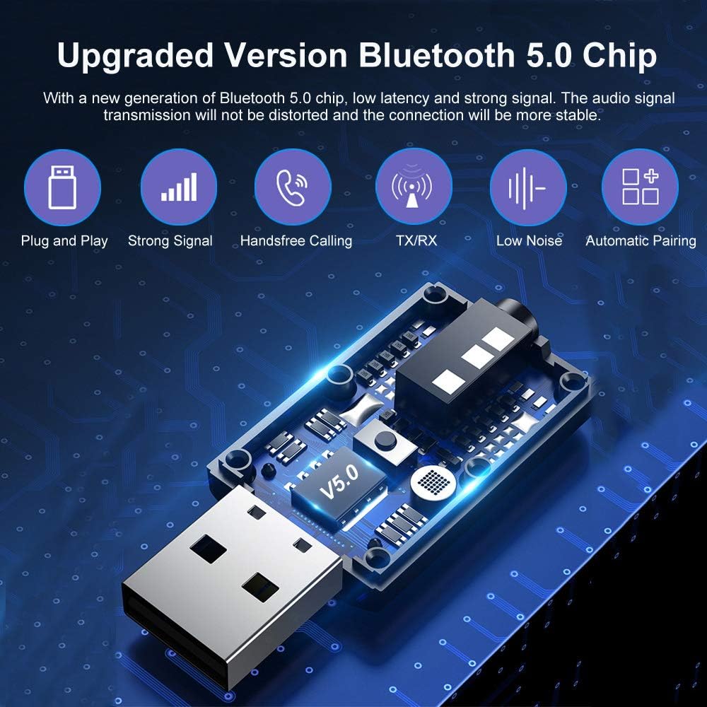 Button design: It allows you to use it conveniently and quickly. You can easily switch to start/receive mode to solve your various usage needs.Automatically turn on: USB power supply, when your device is started, our adapter receiver will automatically turn on. You no longer need to worry about charging the device.Hands-free call: Built-in intelligent noise reduction high-definition microphone, you can talk hands-free. CVC noise reduction technology makes your conversation clearer.