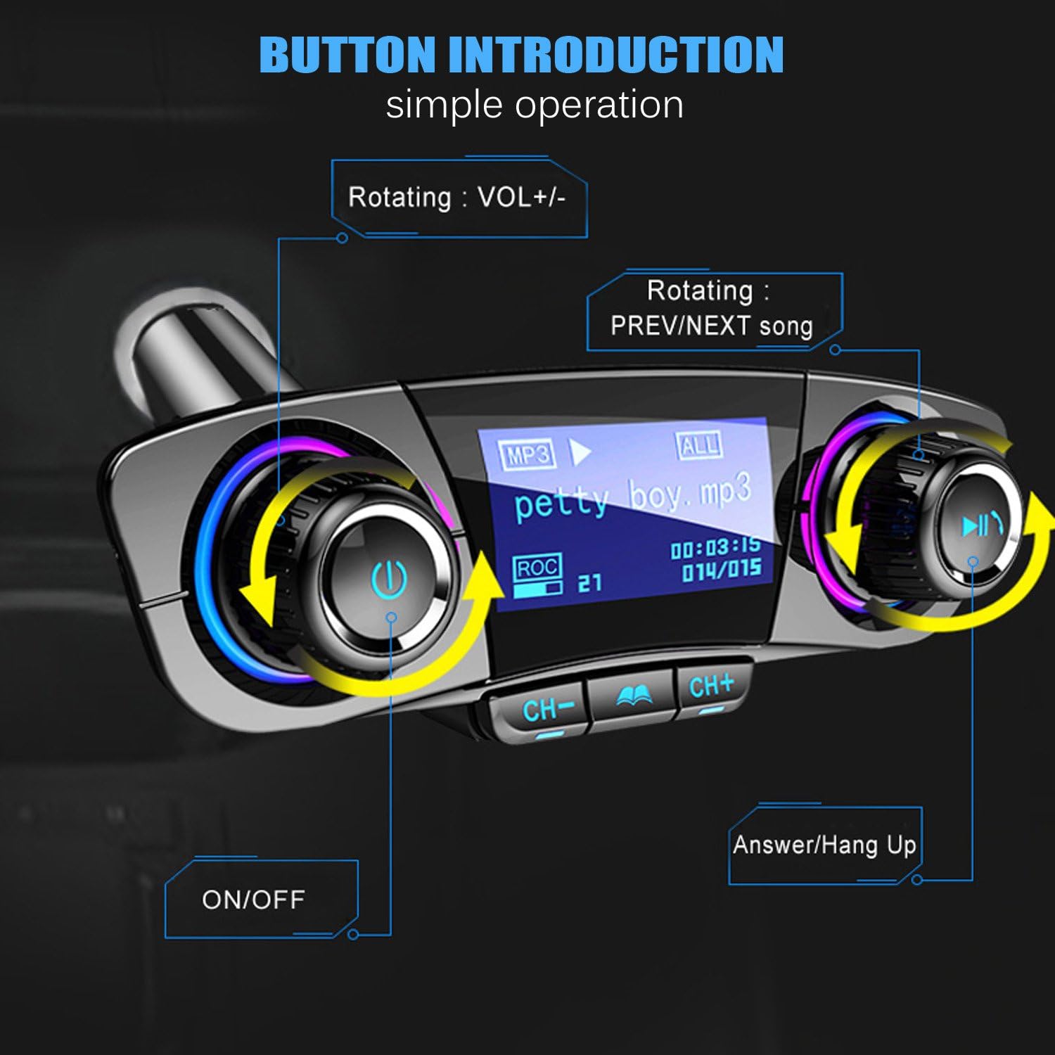Perfect Four Play Modes with Color Screen – Bluetooth play, TF Card play, U Disk Play, AUX Play, Noise and wind suppressed by CVC technology to create full duplex sound quality; support MP3/wma/wav/flac, anti- statics design, enjoy the lossless music in your car!