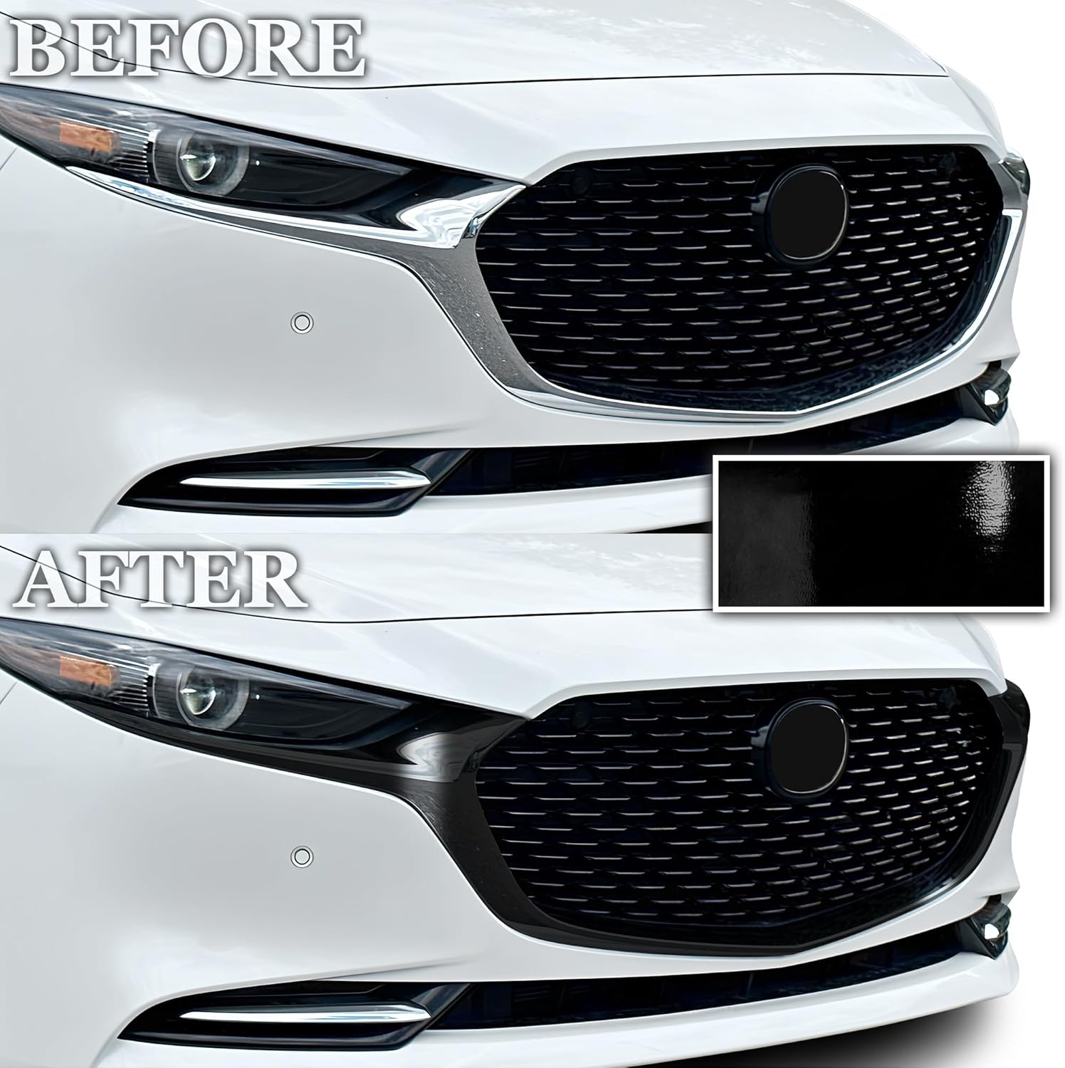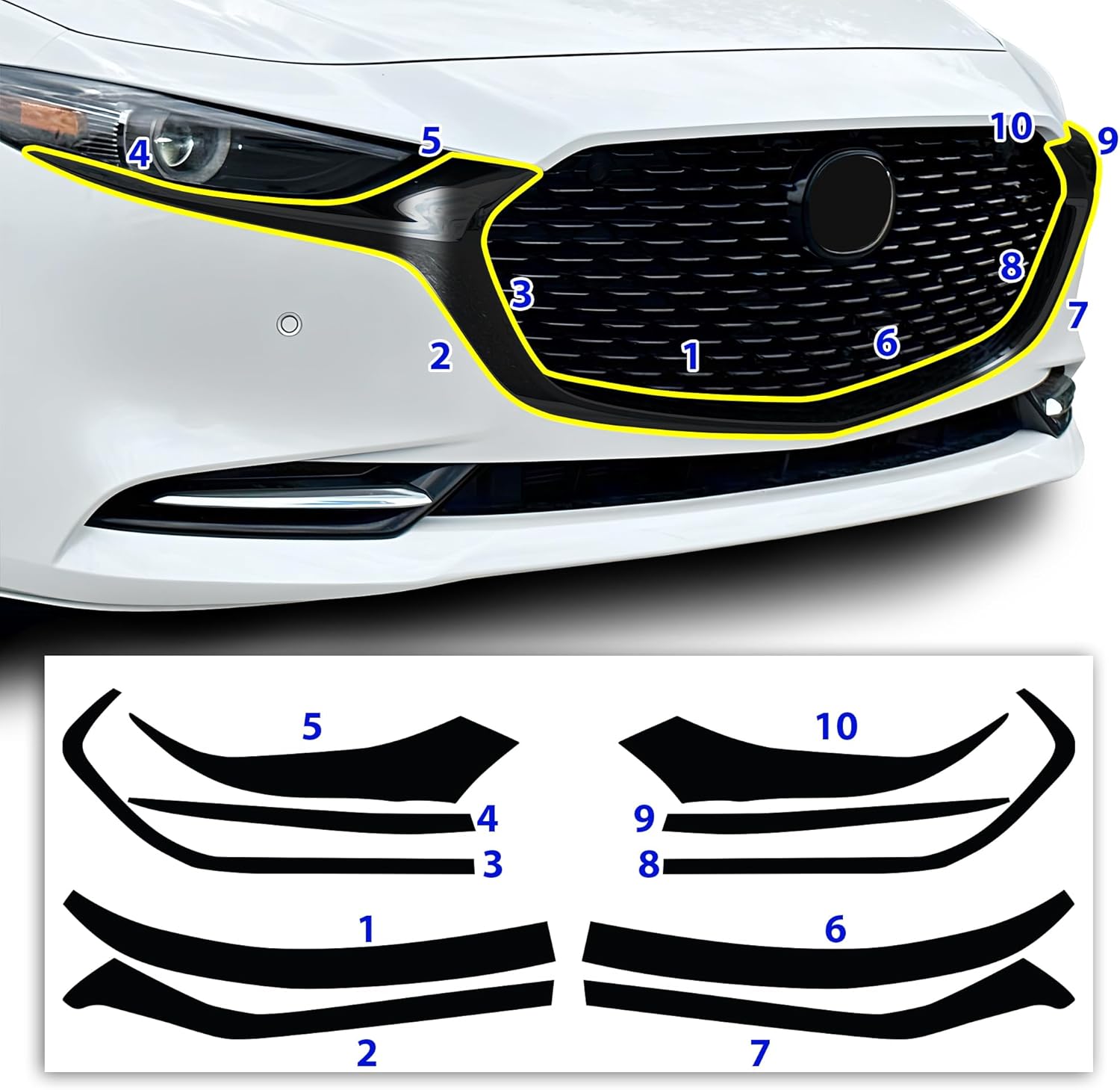 BOGAR TECH DESIGNS for Mazda 3 2019-2026 Front Chrome Delete – Precut Vinyl Overlay Kit, Gloss Black Blackout Trim